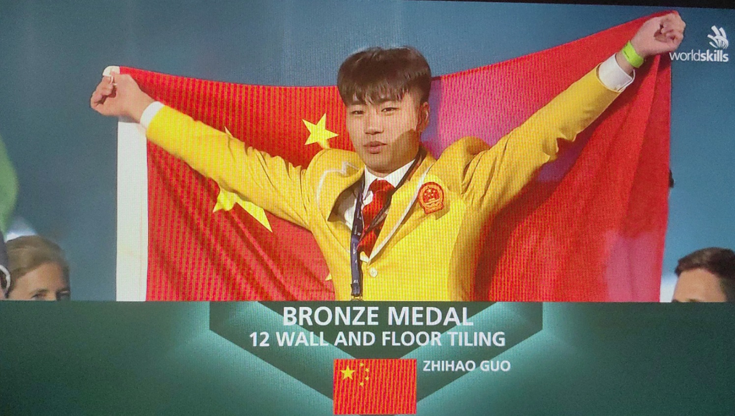 鲍芳涛、郭志豪两位选手“身经百战”,从校队、省队到国家集训队,他们用汗水和执着,一步步实现梦想,走上世界技能大赛的舞台。比赛中,鲍芳涛和郭志豪两位选手在各自的项目中沉着冷静,稳扎稳打,凭借昂扬的斗志、顽强的作风、高超的技能,克服了比赛中各种困难与挑战,奋勇争先、全力以赴、尽展风采,最终技压群雄,一举摘得砌筑项目金牌、瓷砖贴面项目铜牌。