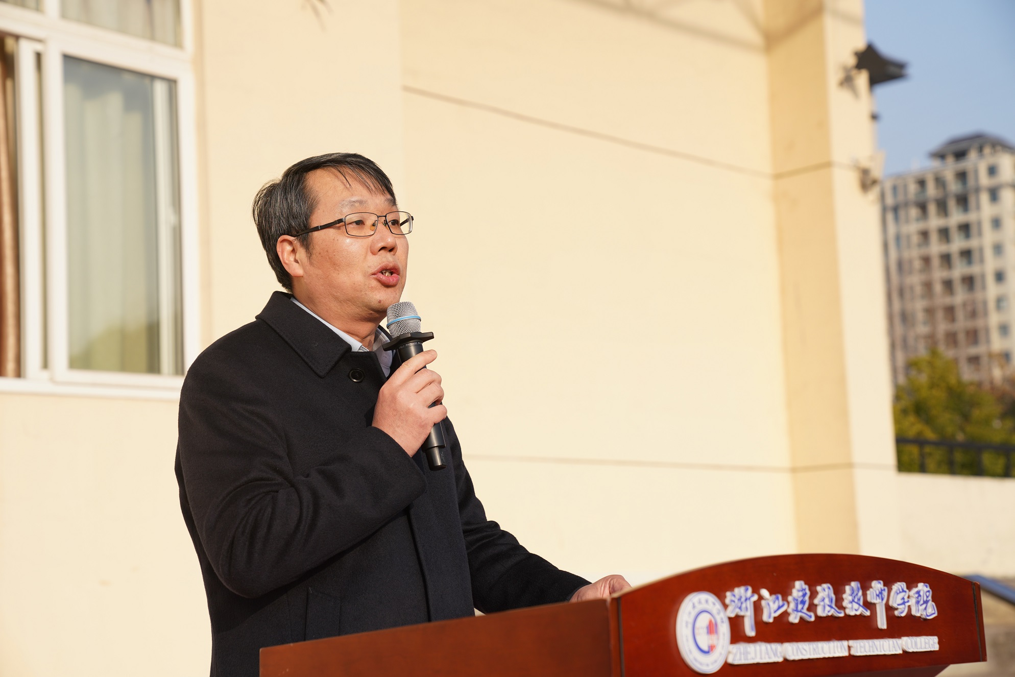 2月17日清晨,浙江建设技师学院以一场主题鲜明的“开学第一课”拉开新学期的序幕。学院党委书记徐永良在鲜艳的国旗下,开讲“开学第一课”,引导同学们勇于创新,争做技能先锋。学院全体师生现场聆听。