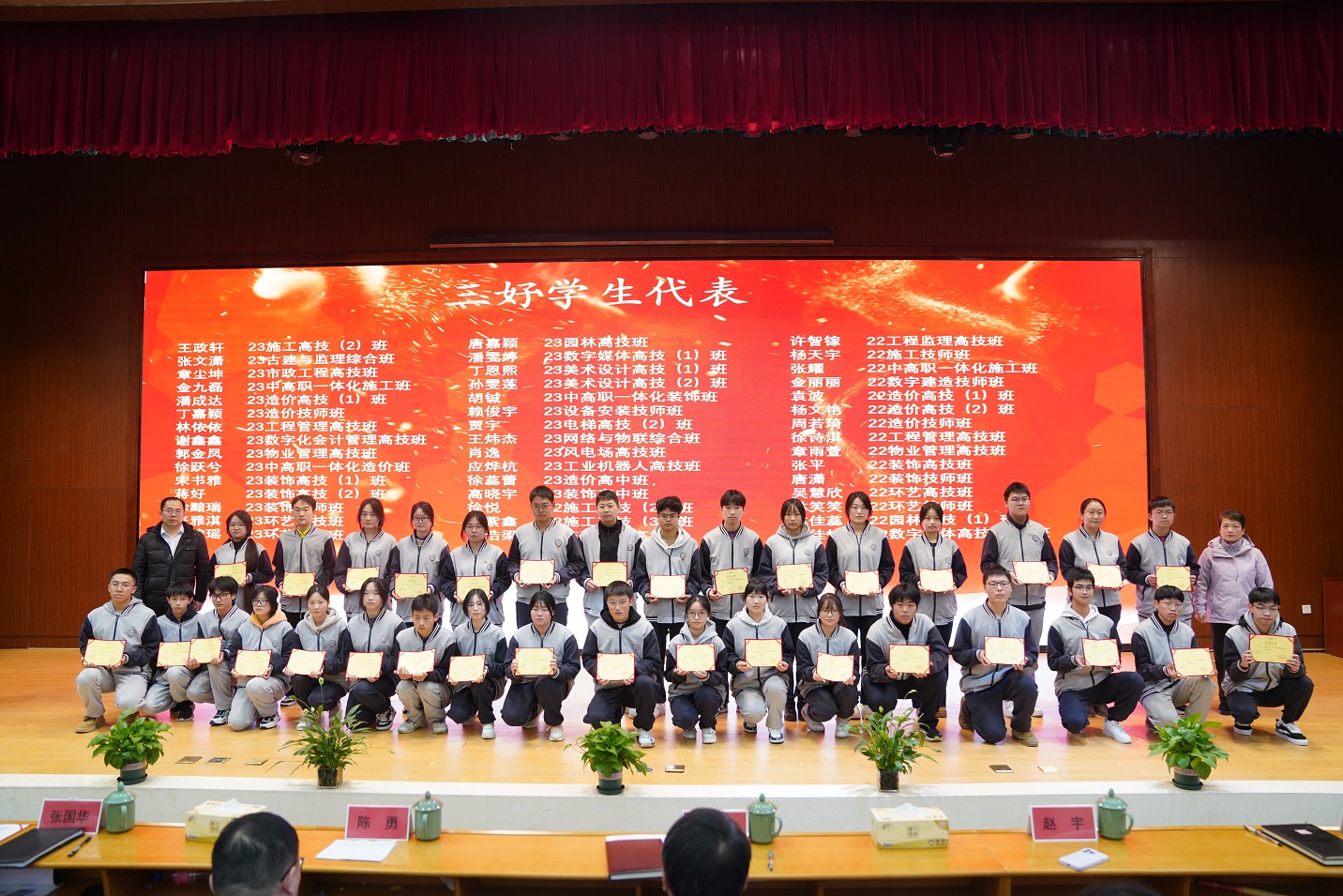大会中,张国华副院长宣读学院国家奖学金、省政府奖学金、学院励志奖学金、一等奖学金获得者及三好学生表彰文件,并希望全体学生以先进为榜样,刻苦学习、钻研技能、全面发展,努力成长为全面建设社会主义现代化国家的高素质技术技能人才,为学院建设“一流技师学院”作出积极贡献。