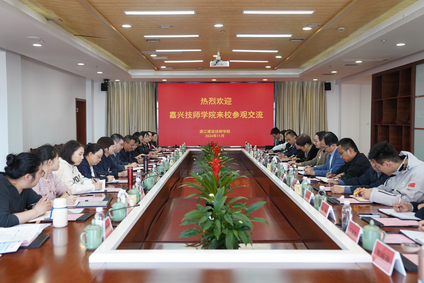 严慧涛副院长对毛文娟院长的详实介绍表示感谢,并介绍了嘉兴技师学院的发展建设情况。他表示,浙江建设技师学院在省一流技师学院建设中已经走在前列,各项建设任务取得的成效令人瞩目,不断涌现的标志性成果令人印象深刻,作为省一流技师学院建设项目培育单位,嘉兴技师学院希望能进一步加强与建设技师学院的交流,深化交流互鉴,共同携手,为社会培养更多高素质的技术技能人才。