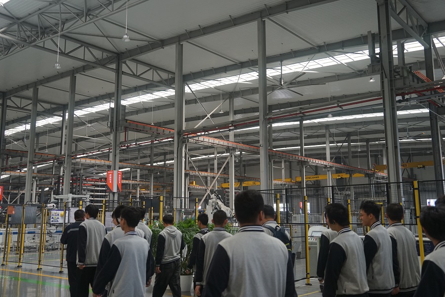 带着对“专业”与“未来”的好奇心,在工程师的带领下,同学们来到空中展厅、数字展厅、西奥未来工厂等区域,亲眼目睹了从自动化生产的全过程。通过对生产设备的观察,了解到现代电梯的设计理念、材料选择和安全标准等关键因素。现场交流环节,同学们积极提问,积极询问关于电梯的结构、故障排除及维护保养等专业知识,展现了他们的学习热情和求知欲。通过互动,大家获得了宝贵的行业经验和实用技巧,为未来的实习和就业打下了坚实的基础。