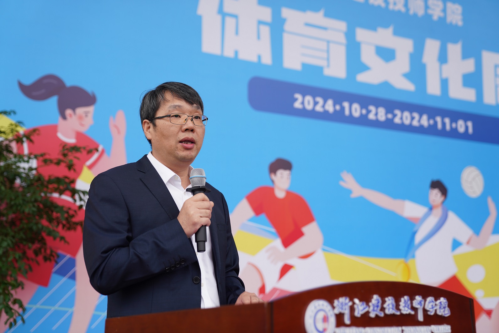 学院党委书记徐永良在致辞中向精心筹备与组织本次体育文化周工作人员致以衷心的感谢。他指出,体育,是力量的角逐,是智慧的较量,更是精神的展现,它承载着人类对健康、活力、美好的不懈追求。本届活力校园体育文化周的隆重举行,既是对学院体育文化工作的一次全面检阅,也是对各参赛班级团队精神、拼搏精神和竞争意识的一次综合展现。希望全体同学拼搏奋进、铸就坚韧之魂,团结协作、凝聚奋进之力,尊重规则、涵养职业之德,以饱满的热情和顽强的斗志投入到各个比赛项目中去,享受运动的快乐、团队的温暖和成长的喜悦;以健康的体魄、坚强的意志、奏响属于浙建技师人“技耀世界,律动青春”的活力之歌。