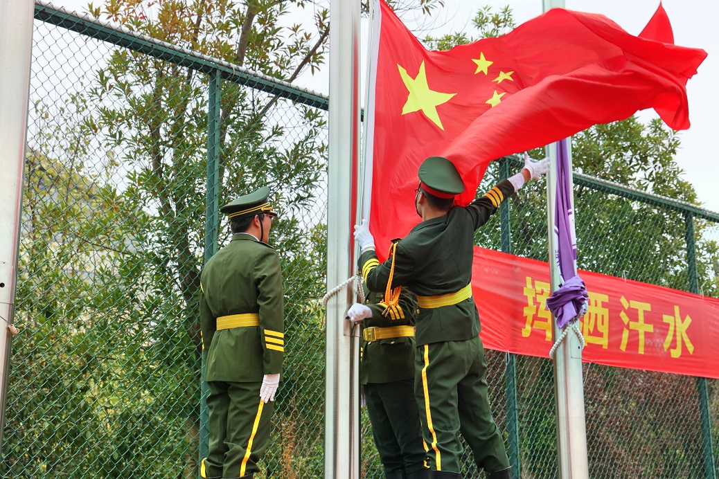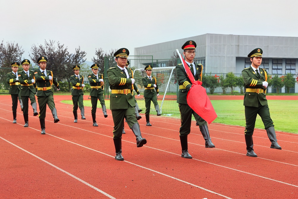 标兵英姿飒爽,军旗迎风飘扬。分列式上,各方队依次通过主席台接受检阅。他们步伐整齐、军容严整、士气高昂、口号嘹亮,用精准的动作,展现了浙建技师学子昂扬向上、团结拼搏、奋发有为的精神风貌。