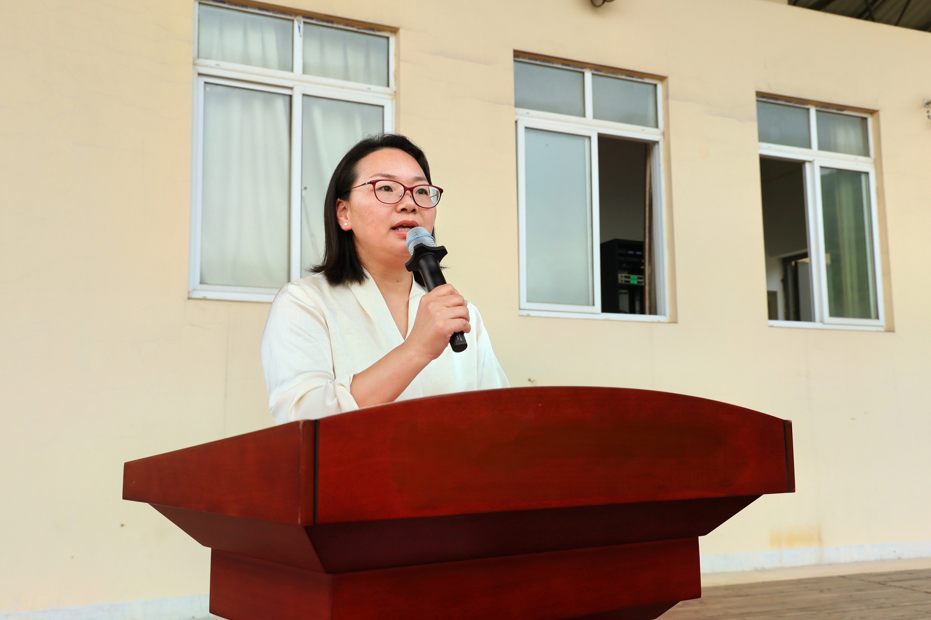 学院副院长黄建蓉宣读此次军训的获奖集体,学院领导依次为获得“精神文明优胜连”“作风纪律优胜连”“会操优胜连队”等荣誉的团队颁发奖状。
