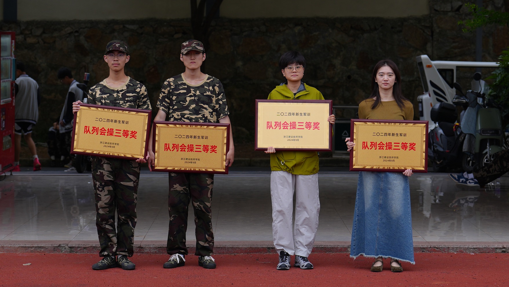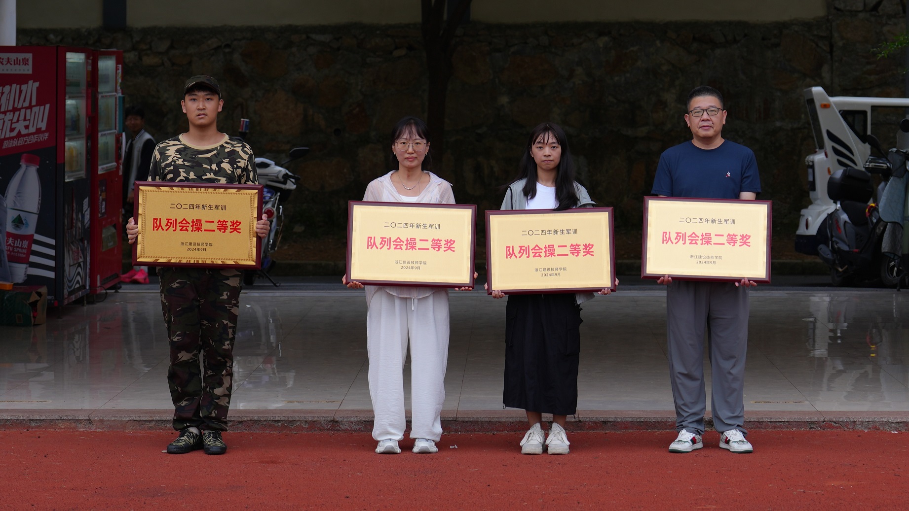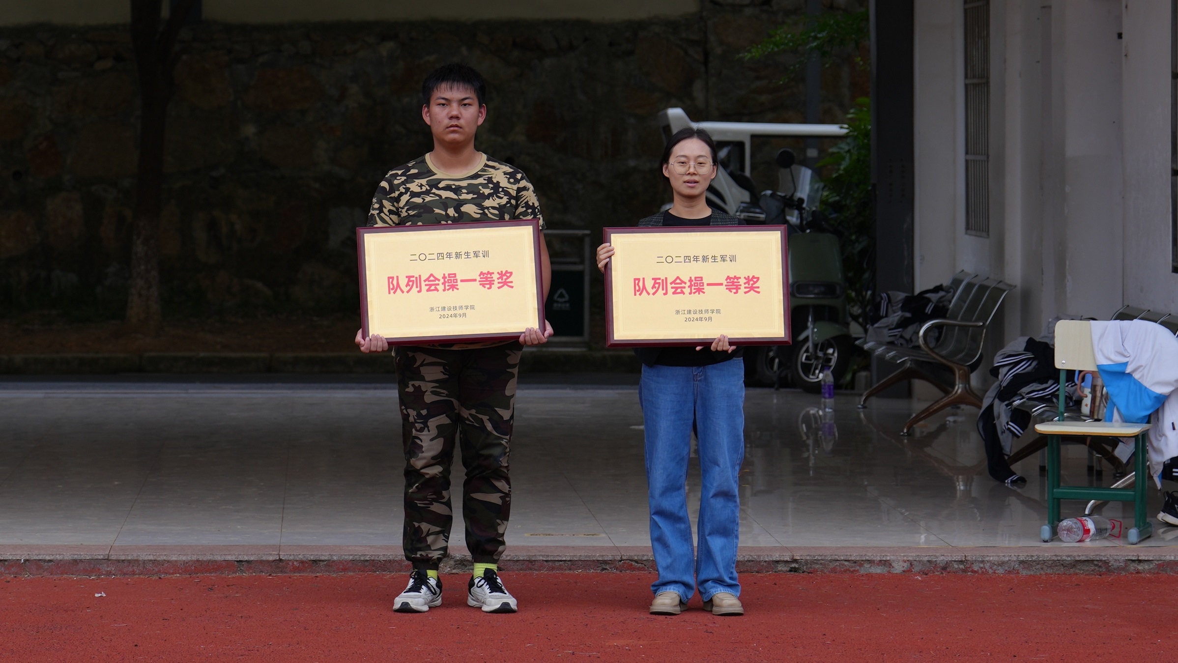 沙场秋点兵,青春正飞扬。经过7天紧张有序的军事训练,9月24日下午,学院富阳校区举行2024年新生军训检阅暨表彰大会。学院领导班子成员及富阳区渌渚镇人武部赵柳添、新生班主任和全体军训教官参加大会,共同检阅学生军训期间的训练成果。