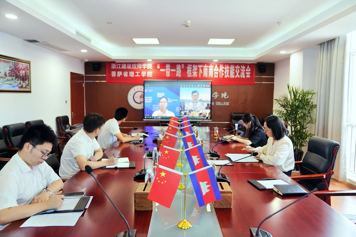 9月26日,在人力资源和社会保障部、国际劳工组织的协调下,南南合作技能开发网络下的结对校——浙江建设技师学院与柬埔寨菩萨省理工学院技能交流会通过线上方式成功召开。浙江建设技师学院长毛文娟、菩萨省理工学院有关领导出席交流活动。学院世赛中心、智能建造学院相关同志参加会议,柬埔寨国家项目协调员Kimroeun Kouy先生主持会议。