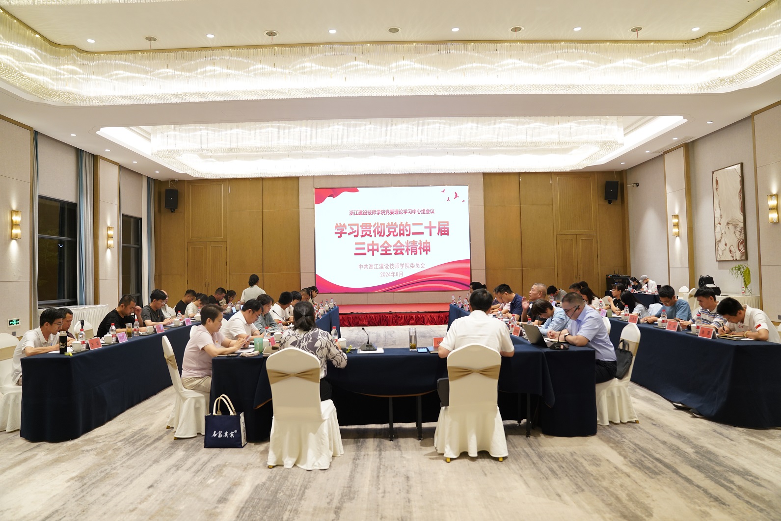8月12日,学院党委召开理论学习中心组会议,深入学习党的二十届三中全会精神。学院党委书记徐永良主持会议并讲话,两级班子成员参加学习。
