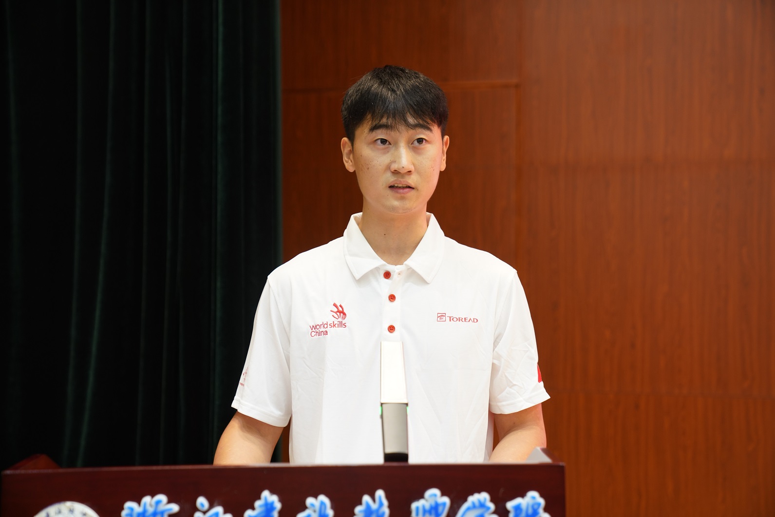 两位参赛选手庄严宣誓,将珍惜这次宝贵的机会,严格遵守比赛规则,以饱满的精神状态和拼搏之姿决战技能之巅,竭尽所能,不负使命,向世界展示中国技能青年的风采。