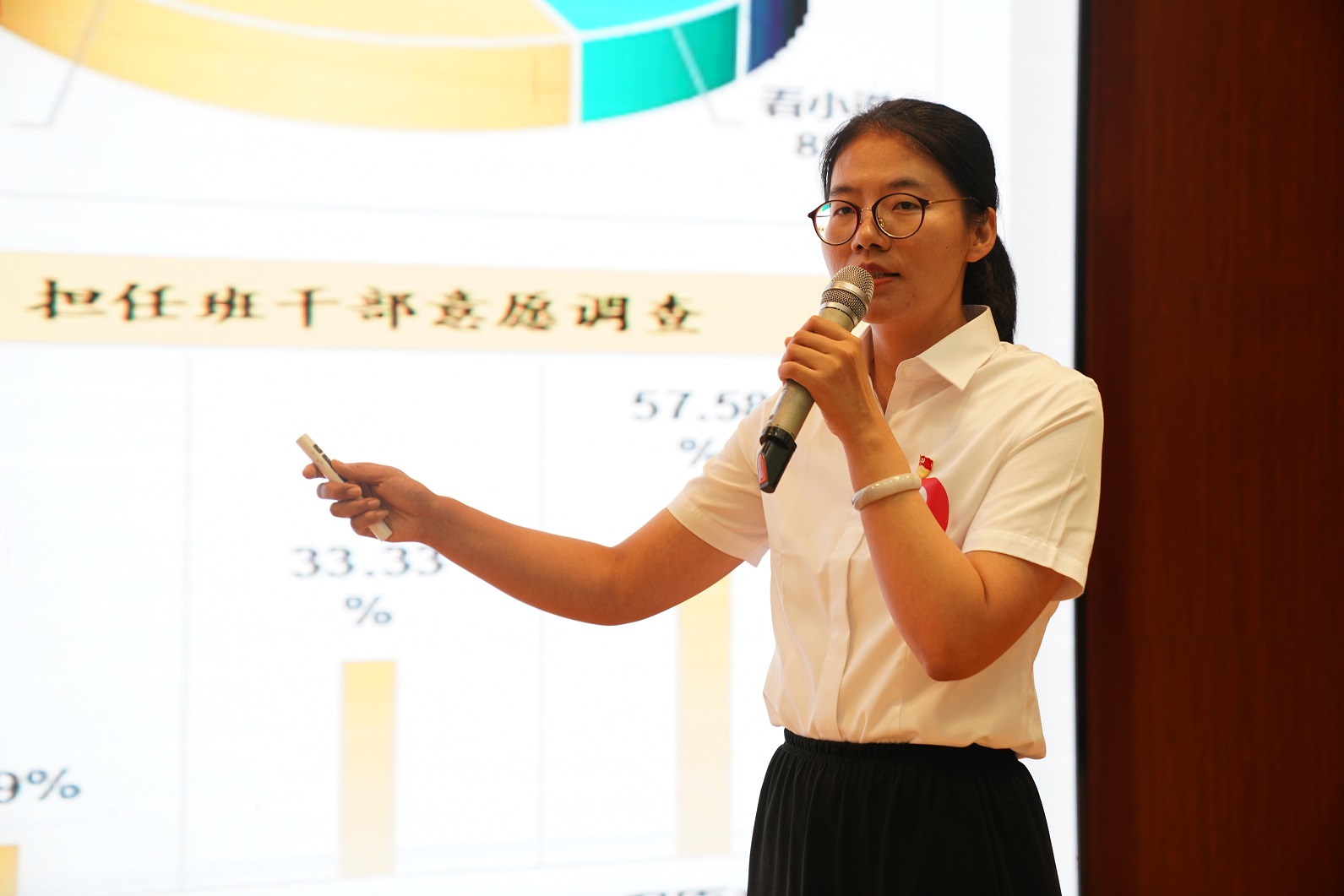 在现场展示环节中,班主任们结合自己的带班经历,阐述班级建设背景、目标、实施过程、创新点、取得成效等,思路清晰,表达流畅,充分展现了班级管理和育人中的智慧。在答辩环节,参赛班主任依据评委的提问,结合自身的教育理论与实战经验,从问题识别、现状分析到策略制定,层层递进,从容应答。