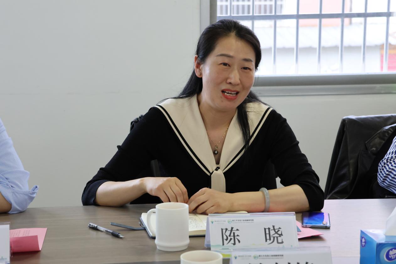 陈晓副总经理一行首先来到浙工大生态工业创新研究院参加两院(浙江建设技师学院、浙工大生态工业创新研究院,以下简称两院)调研汇报会。会议由龙游县政协主席吴剑锋主持。
