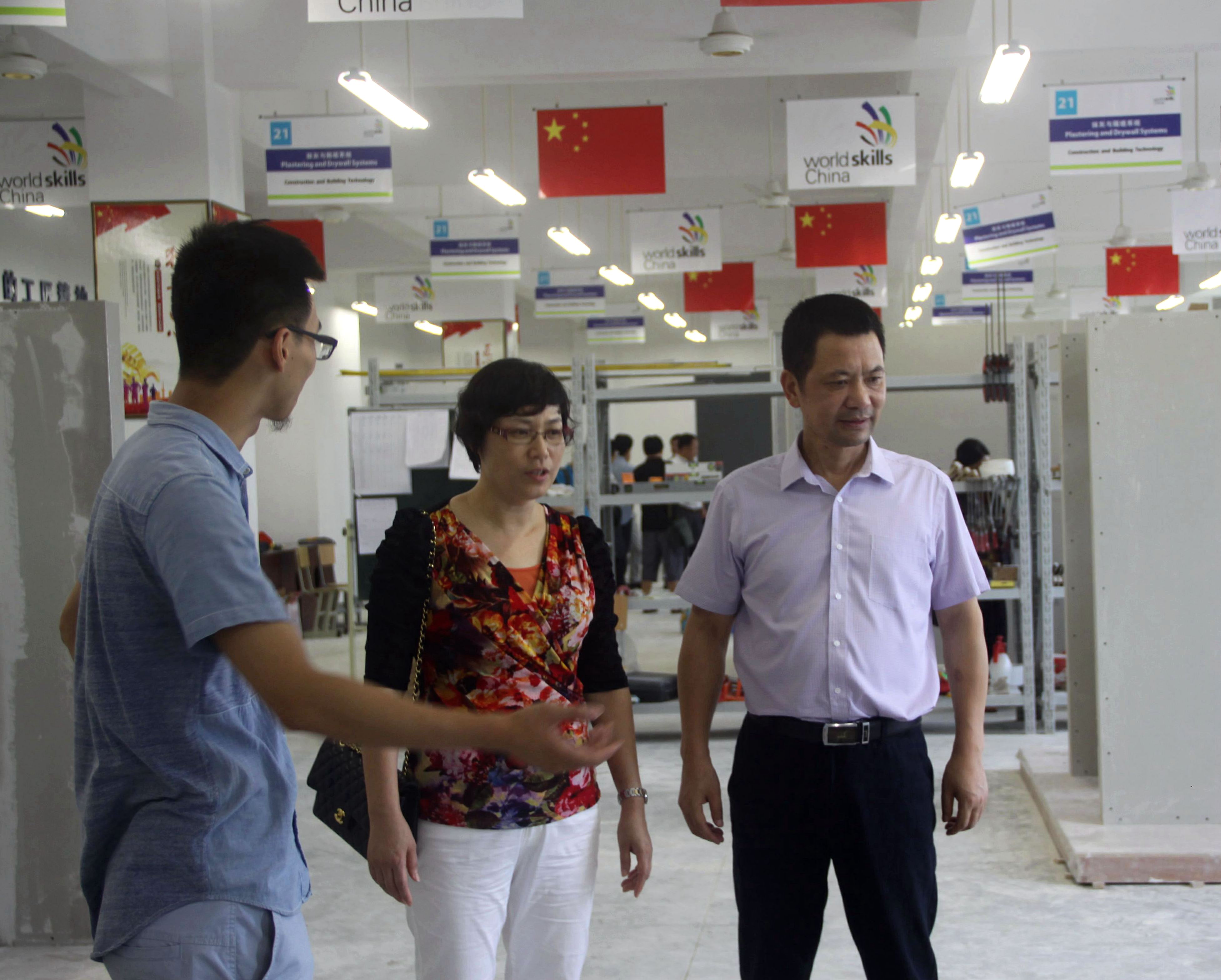 会后,在钱院长的陪同下,杨校长一行饶有兴趣地参观了我院的世赛项目训练基地和砌筑训练场地,并与指导老师热烈交流。