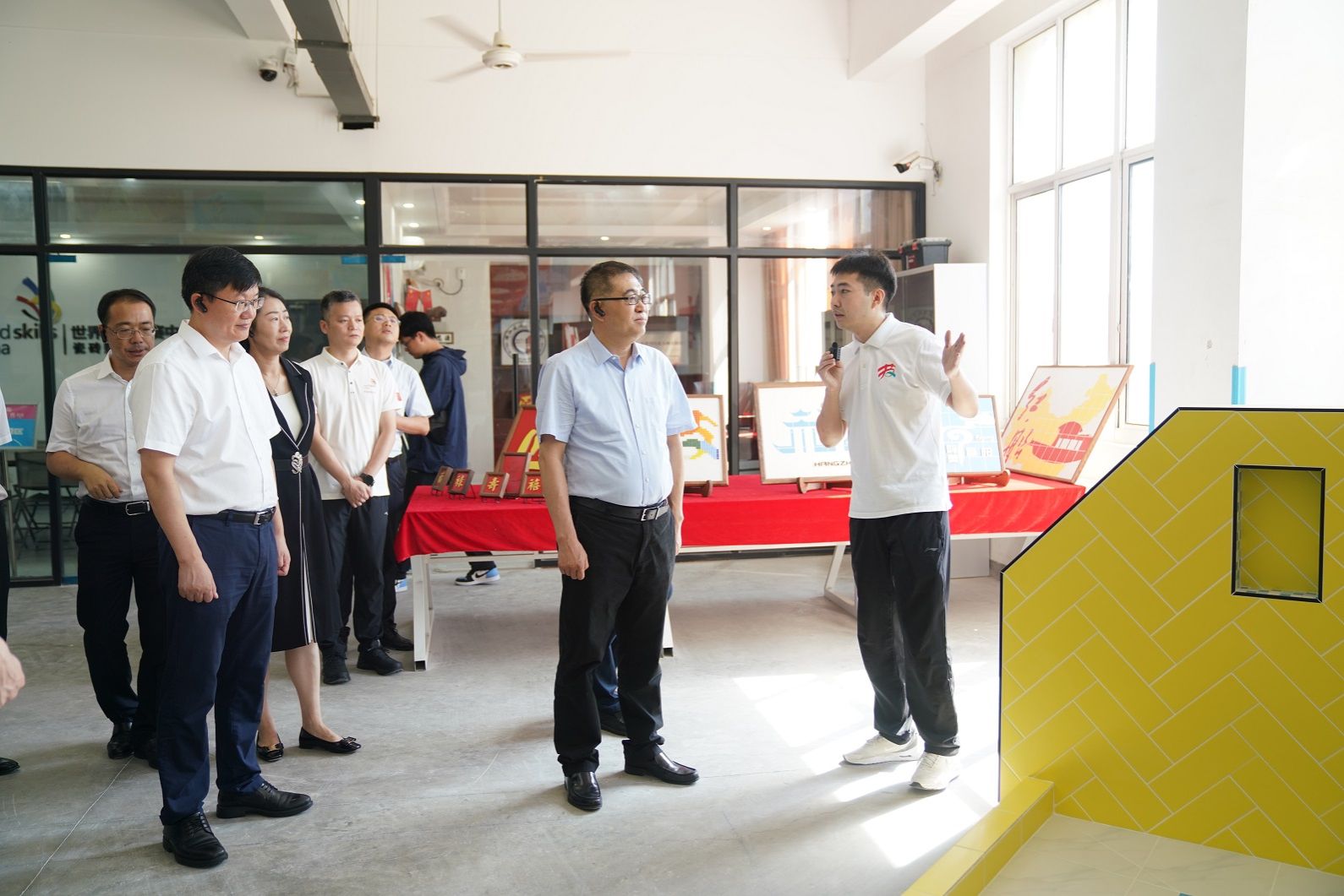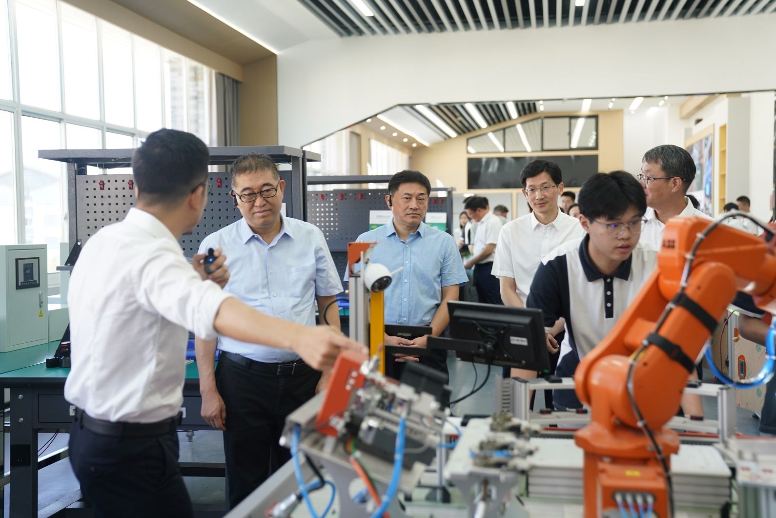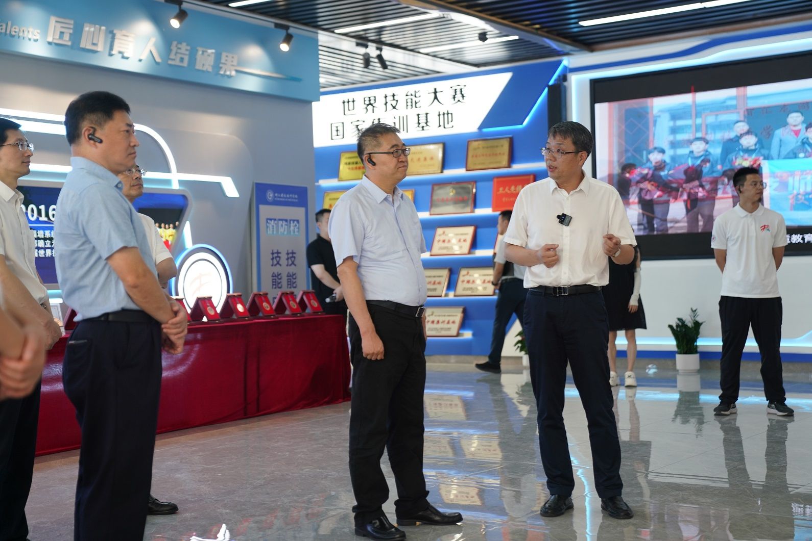 张雁云副省长实地考察了学院世赛集训基地、数字建造产创中心、智能建造综合实训中心等场所,详细了解学院在专业设置、招生就业、人才培养、校企合作等方面的情况,勉励同学们勤学苦练、磨炼技艺,争当高技能人才。他希望学院进一步探索产教融合、校企合作与人才培养的创新模式,构建“学校+企业”一体化教学体系,持续提升学生就业技能与综合水平,为服务国家战略需求作出更大贡献。