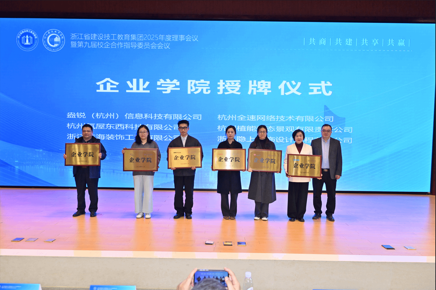 为进一步深化校企协同体育人机制,会议还与杭州威恳新能源有限公司、北京构力科技有限公司、盎锐(杭州)信息科技有限公司、浙江佑海装饰工程有限公司等十余家企业共建的“企业学院”进行了集中授牌。这些企业学院将成为实现专业链与产业链紧密对接、培养企业急需高素质技能人才的重要载体。