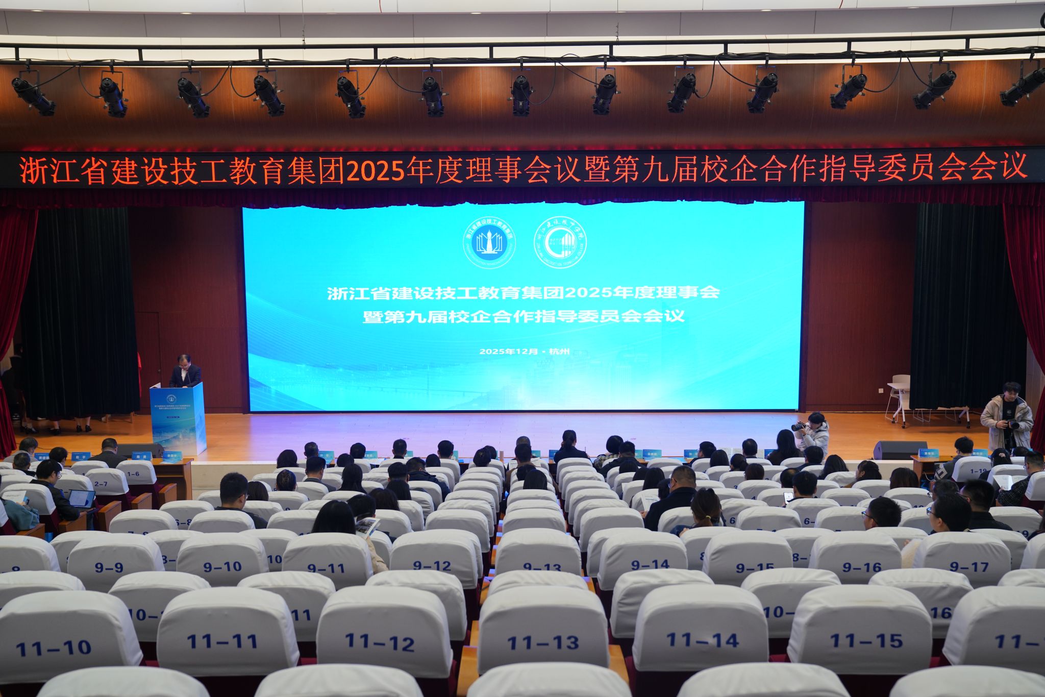 时序入冬,富春江畔暖意融融。为贯彻落实党的二十届四中全会精神,深化产教融合,搭建校企合作新平台,促进教育链、人才链与产业链、创新链的精准衔接,持续提升人才培养质量,12月9日,浙江省建设技工教育集团(以下简称:集团)2025年理事会暨浙江建设技师学院第九届校企合作指导委员会会议在学院报告厅召开。来自政府部门、行业协会、成员院校及合作企业的百余名代表参加。会议由集团秘书长、浙江建设技师学院副院长张国华主持。