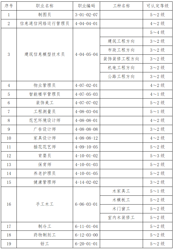 可认定职业一览表