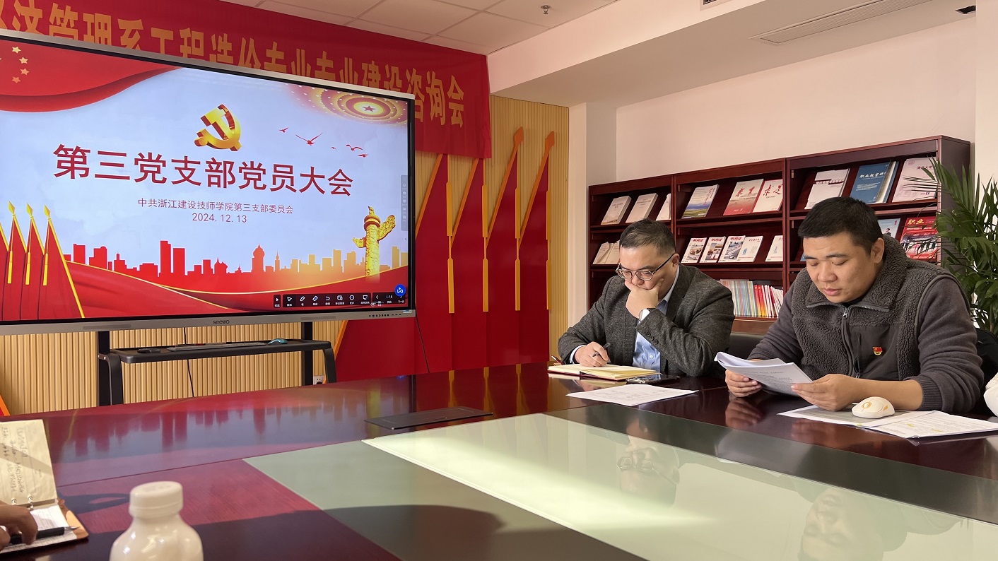 学习好贯彻好党的二十届三中全会精神是当前和今后一个时期全党全国的一项重大政治任务。为深入学习贯彻党的二十届三中全会精神,引导广大党员教师把思想和行动统一到全会精神上来,助力学校高质量发展,第三党支部于12月13日召开支部党员大会,进行了党的二十届三中全会精神集中培训,培训以观看视频课程和开展专题研讨形式进行。学院纪委书记、工会主席陈勇及支部全体支部党员参加,支部书记孔国强主持会议。