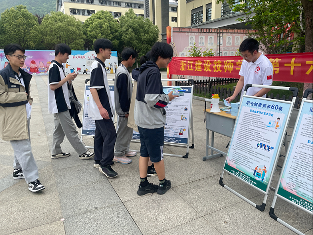 为践行健康中国理念,有效提升劳动者职业健康素养水平和保障劳动者职业健康权益,4月28日下午,学院第五党支部联合富阳区卫生健康委员会部门,以“提升职业健康素养 助力健康中国建设”为主题,开展职业病防治进校园宣传活动。本次活动主要面向学院建筑工程系、安装工程系应届毕业学生。