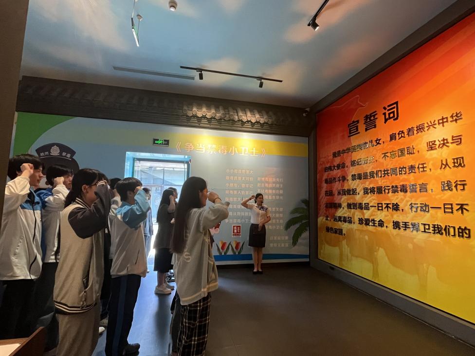 最后,解说员带着师生们庄严宣誓,纷纷表示将积极参与到禁毒宣传中,为构建无毒社会贡献自己的力量。