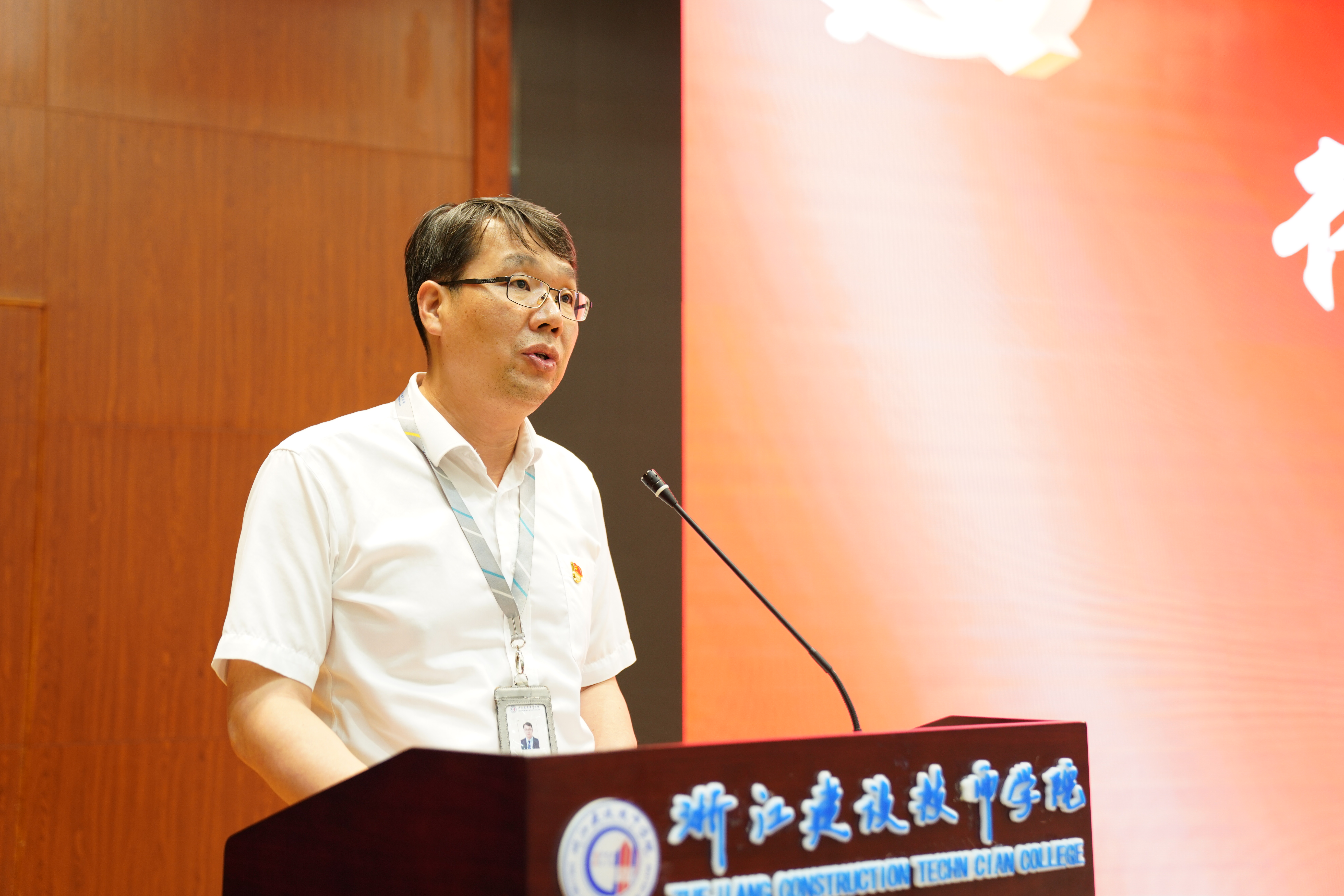 优秀学员代表,19造价技师(1)班董金楠同学上台发言。他向学院领导和任课老师表达诚挚的感谢,分享了党校学习的感受。他说,通过业余党校的学习,更加明确了作为新时代优秀青年学生的使命与责任,将以更高标准严格要求自己,努力学习,以实际行动积极向党组织靠拢。