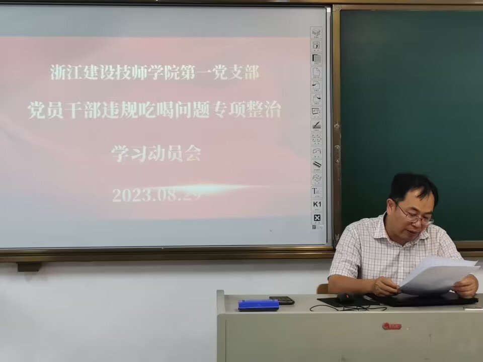 为深入贯彻落实党的二十大精神,坚定不移推进全面从严治党从严治检,坚持以严的基调正风肃纪,8月29日,学院第一党支部召开违规吃喝问题专项整治工作动员会,全体党员参加。