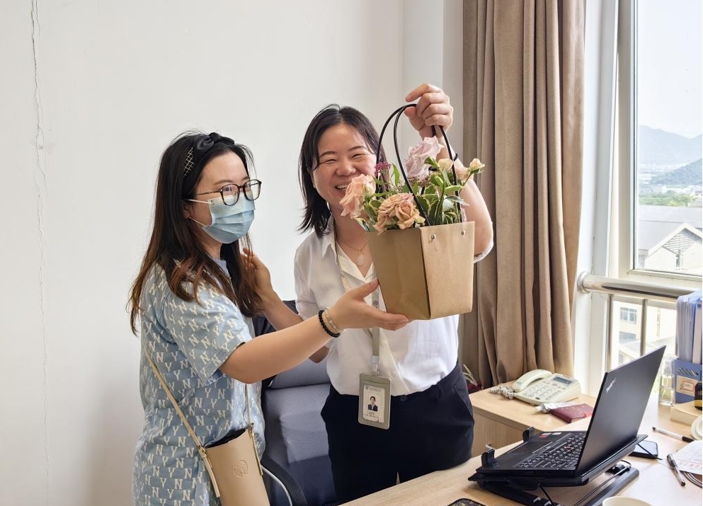 “咚咚咚,这是一份来自第三党支部的‘520’小礼物,在这个甜蜜的日子里,祝福大家工作顺利、生活幸福”。伴随着阵阵清脆的敲门声和祝福语,学院各个办公室的教职工们陆续收到充满爱意的小礼物,女教师们收到的是由5朵月季作为主花的精巧花篮礼盒,男教师则收到2支精心包装的月季鲜花。
