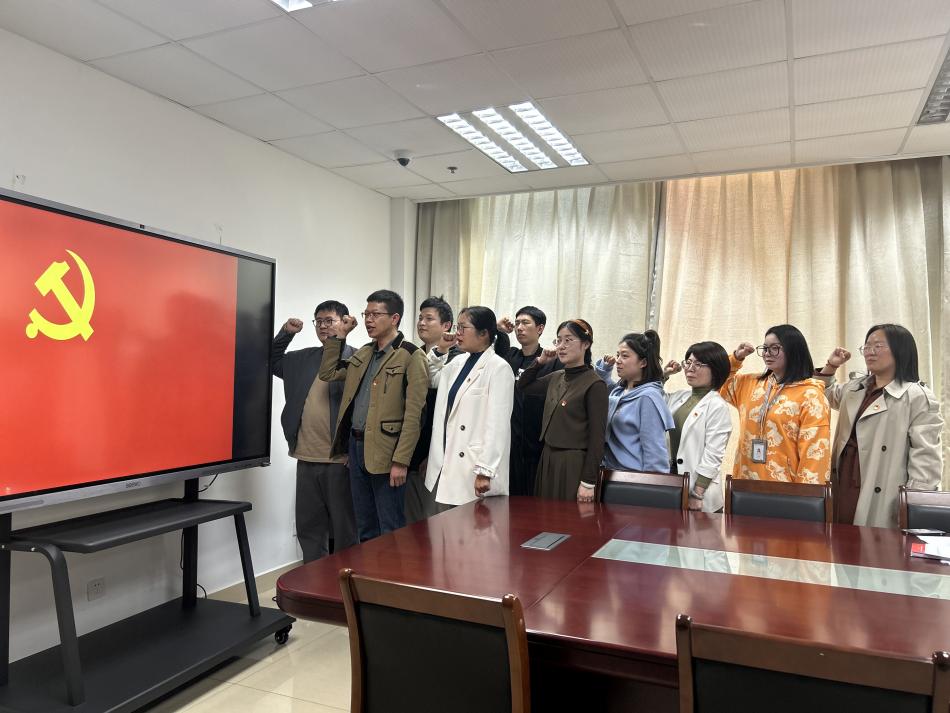 会议最后,大家面向党旗,右拳举起,宣誓庄严。党员们慷慨激昂的声音表达了自己对党的忠诚,以及为中华民族伟大复兴奋斗终身的决心。