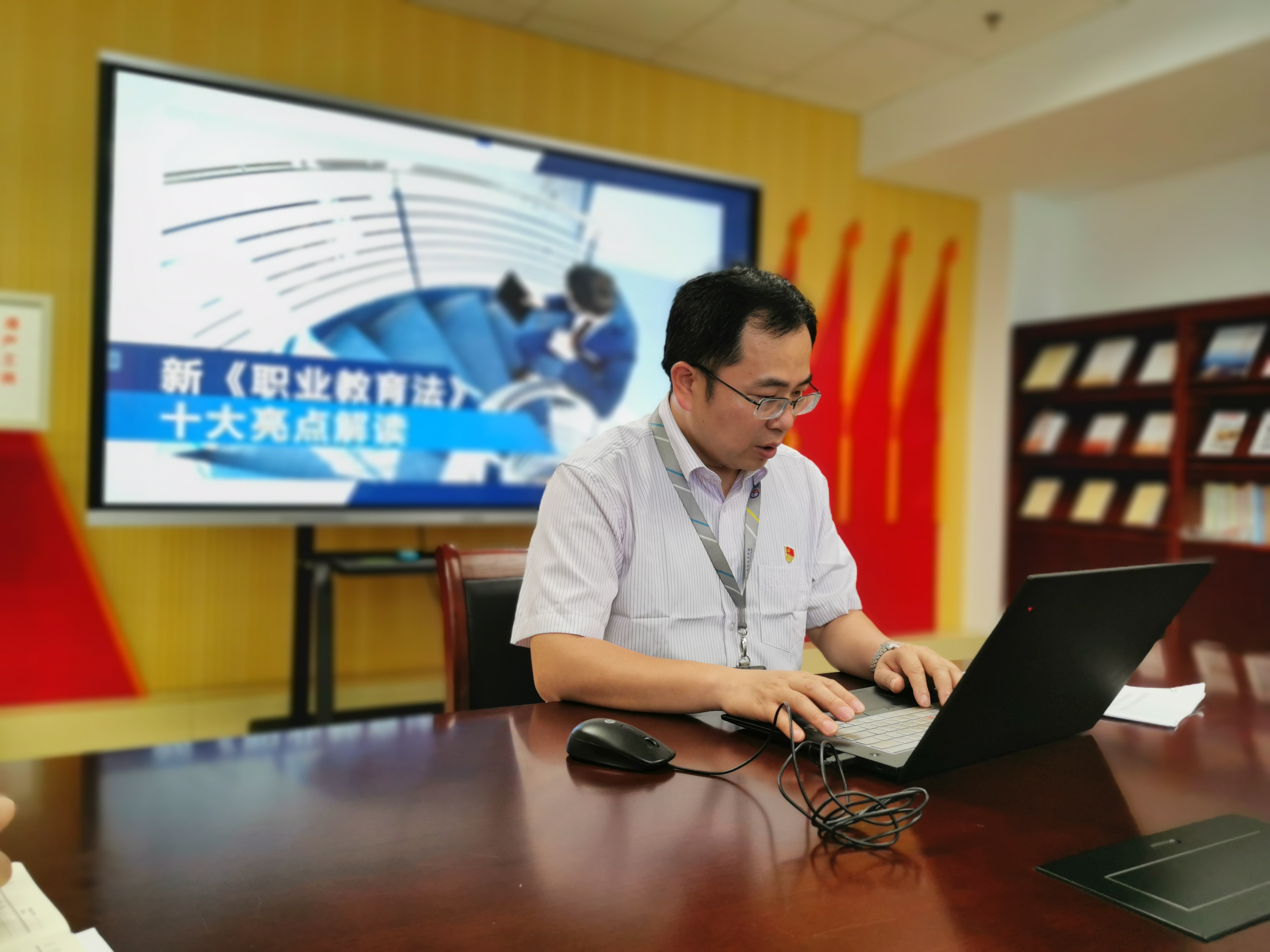 本次会议上,支部书记张国华还带领大家学习了《新职业教育法》,解读了其内涵、意义和修订策略,分析了现代职业教育发展面临的新形势、新要求,围绕深化依法治教、依法办学,促进职业院校治理体系和治理能力现代化及深化产教融合、校企合作,完善职业教育保障制度和措施展开论述,并展望了技能型社会与职业教育改革的发展前景。