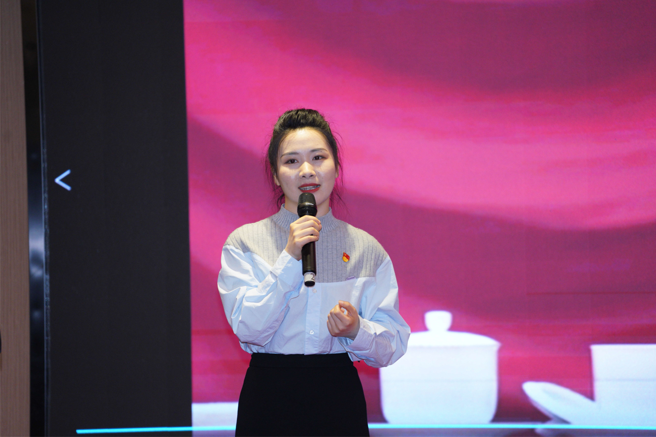 许振佳老师以“倾听时代之音,品悟奋进力量”为主题,以全世界无产阶级战歌—《国际歌》为切入点,从创作背景、歌词赏析两大方面讲述了《国际歌》所蕴含的精神力量。歌声飘过百年,歌声里的力量却历久弥新,“作为新时代的中国青年,我们要以实现中华民族伟大复兴为己任,与党同心,与时同行,在青春的赛道上奋力奔跑,助力职业教育高质量发展,成就更多‘技能改变命运’的精彩故事”。《国际歌》余音绕梁,铮铮誓言铿锵有力,赢得了全场观众的阵阵掌声。