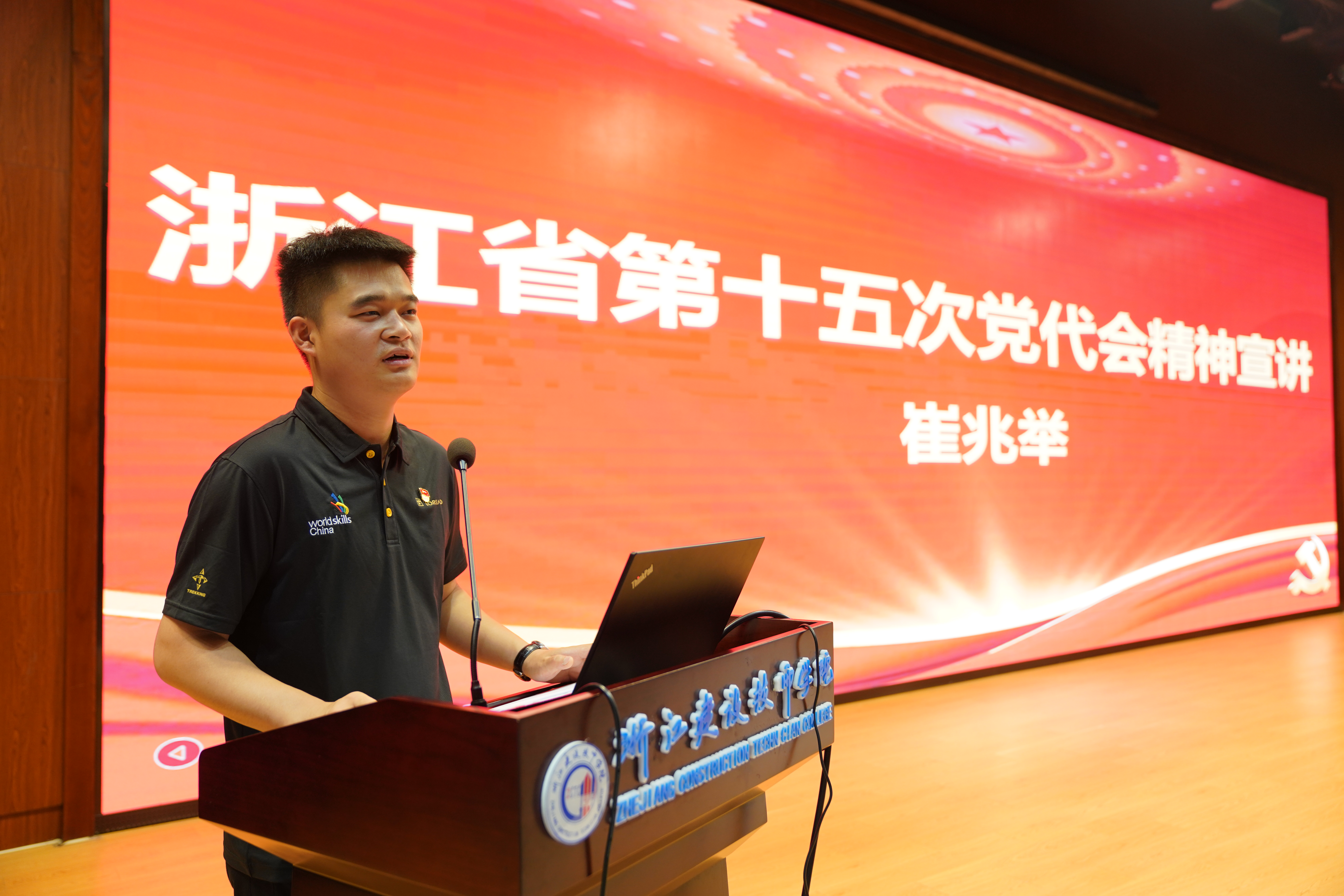 6月24日,在党代会闭幕的第二天,学院教师、浙江省第十五次党代会代表崔兆举用朴实易懂的语言宣讲党代会精神,第一时间为全体党员、入党积极分子送上党的好声音。