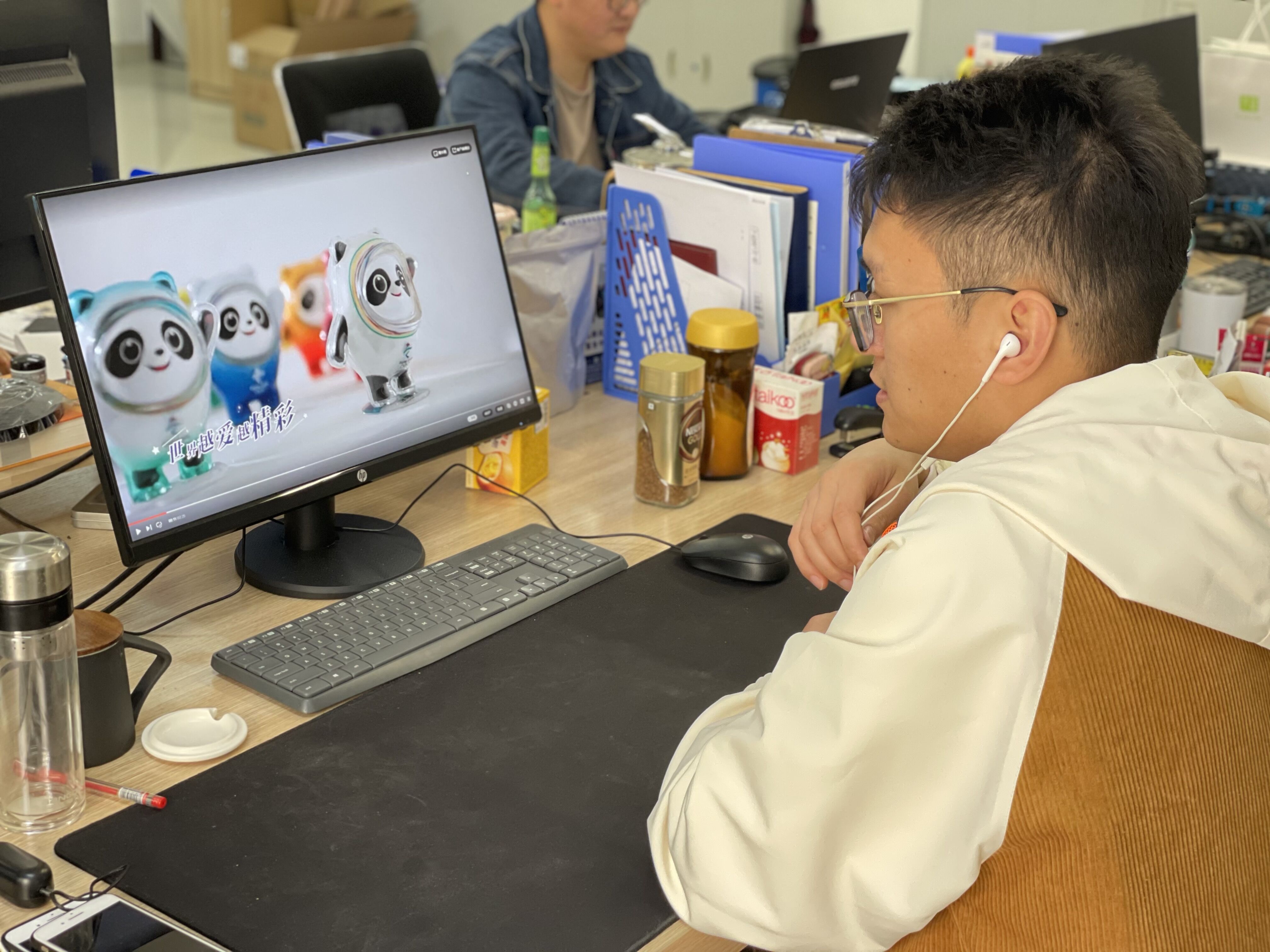 课余时间党员老师们也不闲着,随着比赛的层层热潮,吉祥物“冰墩墩”、“雪容融”成了顶流,一“墩”难求。这可难不倒物联网专业的董文正同志,他带领着Python兴趣小组的学生们,导入turtle程序包、启动画笔、定位轮廓坐标、绘制轮廓、填充颜色等步骤后,俏皮可爱、活灵活现的“冰墩墩”和“雪容融”就呈现出来了,大家看过之后,纷纷竖起了大拇指说:“确认过眼神,是本墩,本融!”徐圣杰同志带着大家学唱冬奥会歌曲《一起向未来》,唱响了党员同志们渴望携手走向美好明天的共同心声。