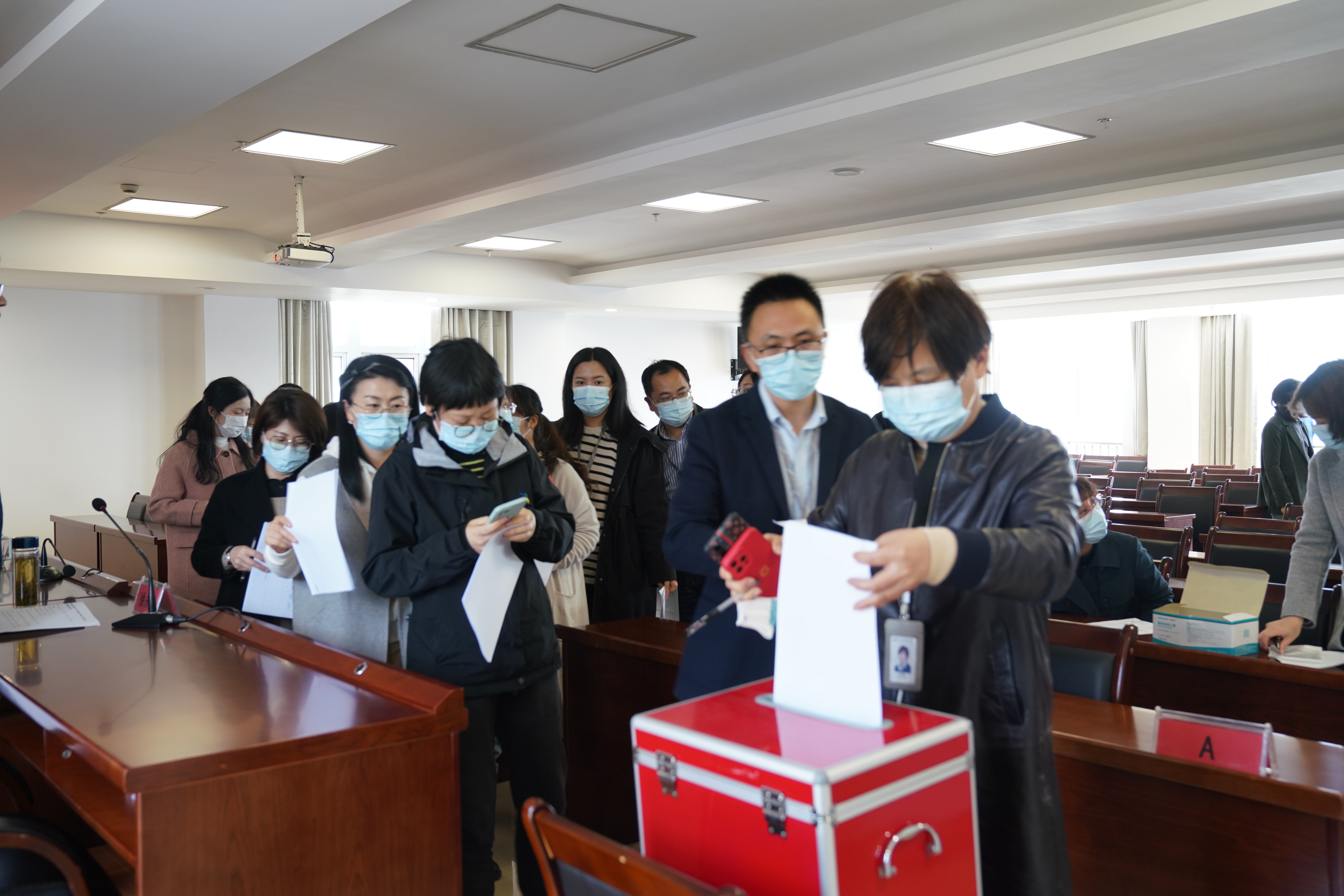听取报告后,教职工代表对领导班子及成员2021年度的工作进行民主测评,对2021年度选人用人工作和新提拔干部进行了民主评议。