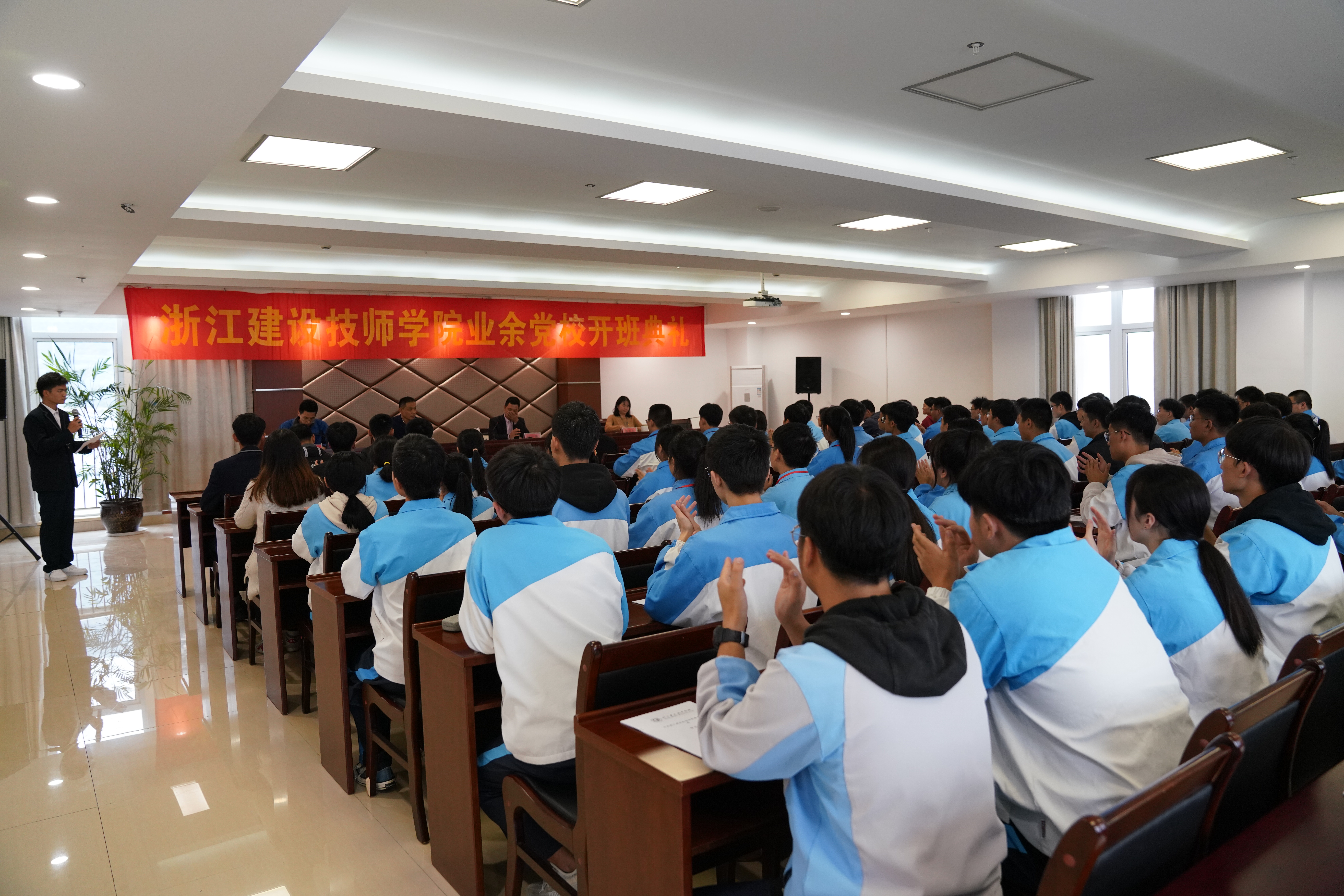 10月27日下午,浙江建设技师学院2020年度业余党校开班典礼在行政楼901会议室召开。学院党委书记、院长钱正海、党政办副主任陈秀华、第八党支部书记王振帅、团委书记徐震及全体学员参加了开班仪式。