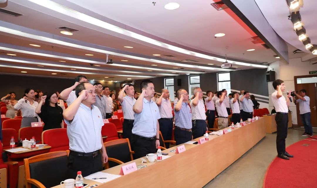 在主持人的带领下,现场举行了重温入党誓词仪式。全场与会人员面向党旗,右手举拳庄严宣誓。