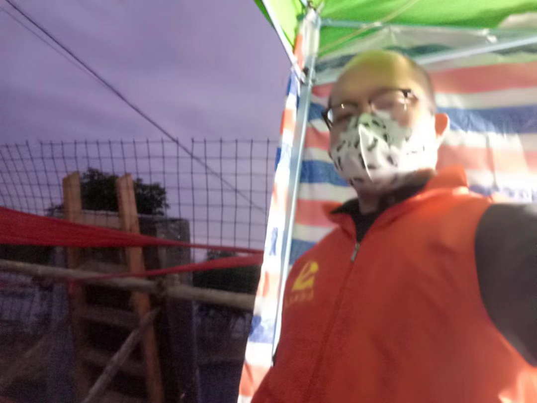 王晓康老师,第二党支部一名有着17年党龄的老党员,老家在东阳。春节前夕,他带着家人回到了东阳老家,在这里,他度过了一个特殊的春节。他的父亲也是一名老党员,在村里,父亲值白班,他值晚班,父子两人齐上阵,一起把好村大门。测量体温、登记信息、查看通行证,这是王晓康在值班期间的常规动作。因为值的是晚班,春寒料峭的南方,室外取暖基本靠抖;村里有时候还会断电,这时候他就自动切换为电工;饿了、困了,来一碗美味的泡面。这些都成了这个春节的难忘记忆。