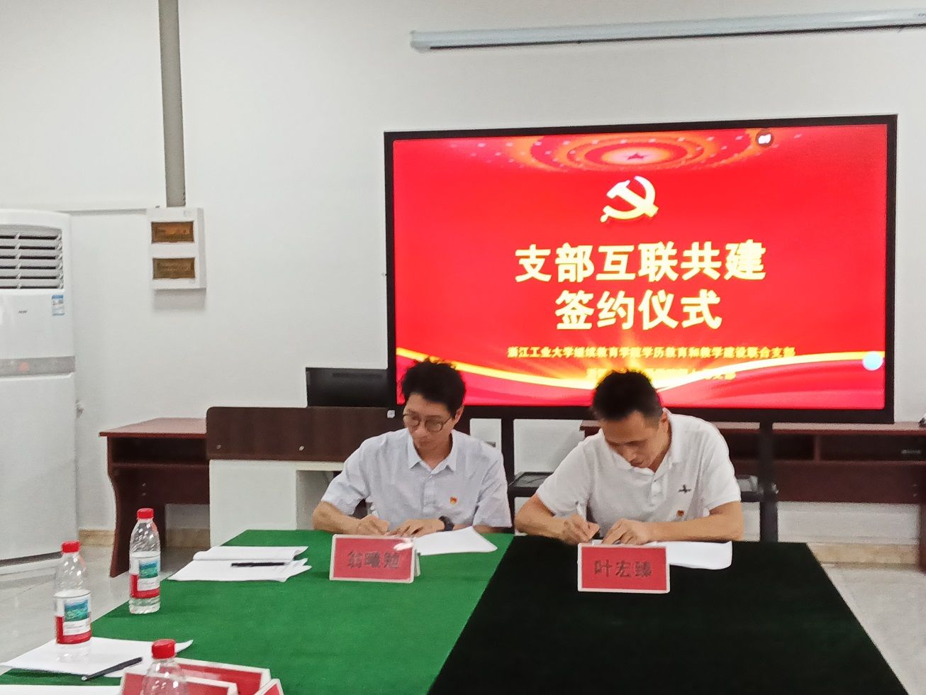 在全体参会人员的共同见证下,叶书记与翁书记代表双方支部正式签订党建共建合作协议书。