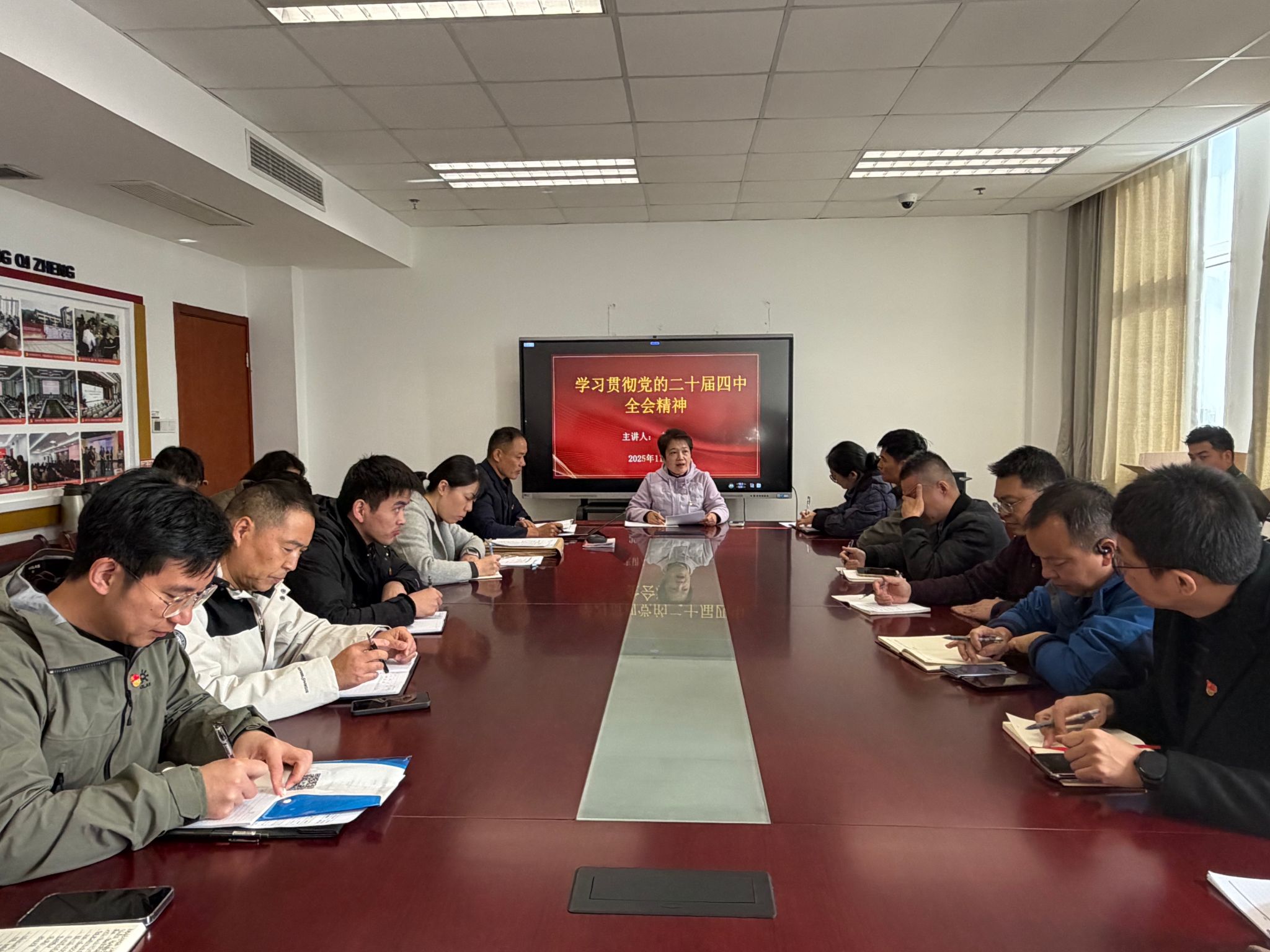 赵宇副院长围绕“深化认识、提升能力、防控风险、担当使命”四个核心方面展开阐述。她指出,党的二十届四中全会聚焦国家治理体系和治理能力现代化作出重大部署,为学院工作提供了根本遵循。学院教育教学和后勤保障战线的党员同志,既是高技能人才培养的“前锋战士”,也是学院正常运转的“幕后英雄”,要主动向制度化、科学化、规范化、智慧化管理模式转型,将全会精神转化为实干实效。