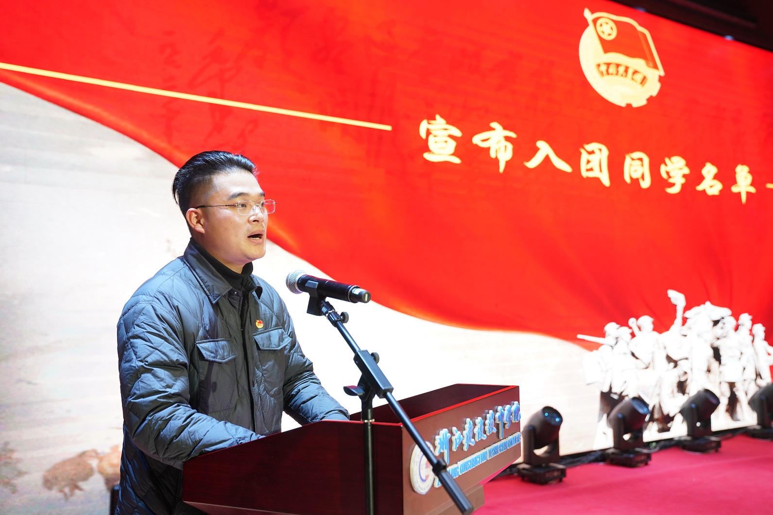 新团员代表缪欣奕同学上台发言,她表示,加入中国共产主义青年团,对于每一位浙江建设技师学院的学子来说,不仅是荣誉的象征,更是责任与担当的开始。接下来,将以更加饱满的热情投入到学习与实践中去。在学院这片技能成才的沃土上,继续刻苦钻研专业知识,精益求精,不断提升自身的专业技能和综合素质,同时,在学生组织队伍中传递正能量,展现新时代青年的风采。