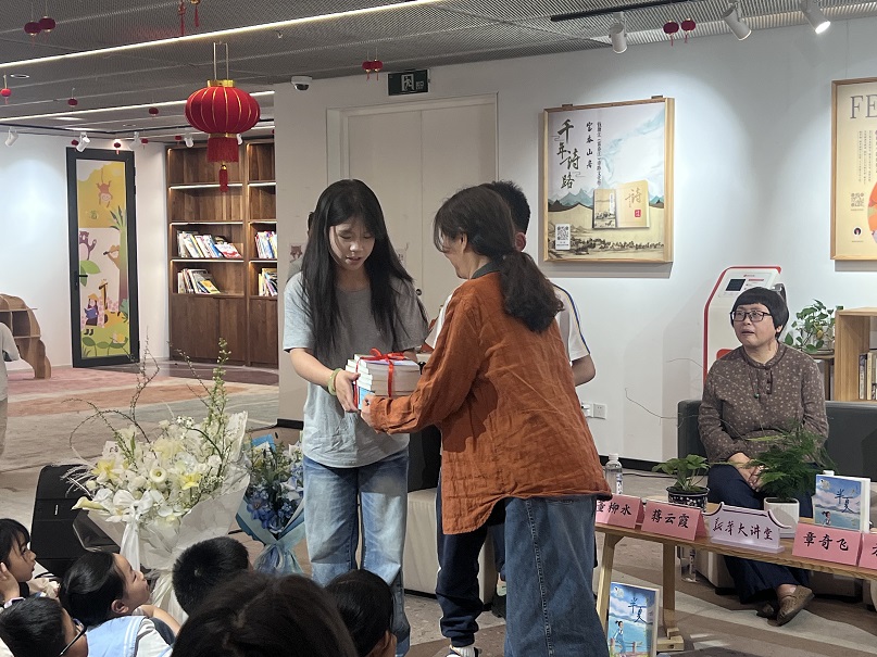 分享会上,“如阅”读书会还代表学院接受了方格子老师的现场赠书。王烨同学还勇敢地向作家发问:“中国人刻在骨子里的含蓄,就像半夏的父亲一样羞于表达自己的爱,那在平时生活中我们应该怎么样去大胆的描述自己的爱呢?”方格子老师则给出了充满智慧的答案,“真诚,恰如其分表达就可以。真正的爱往往藏在细节和行动上。”