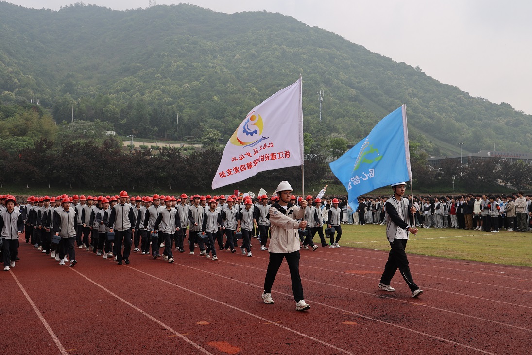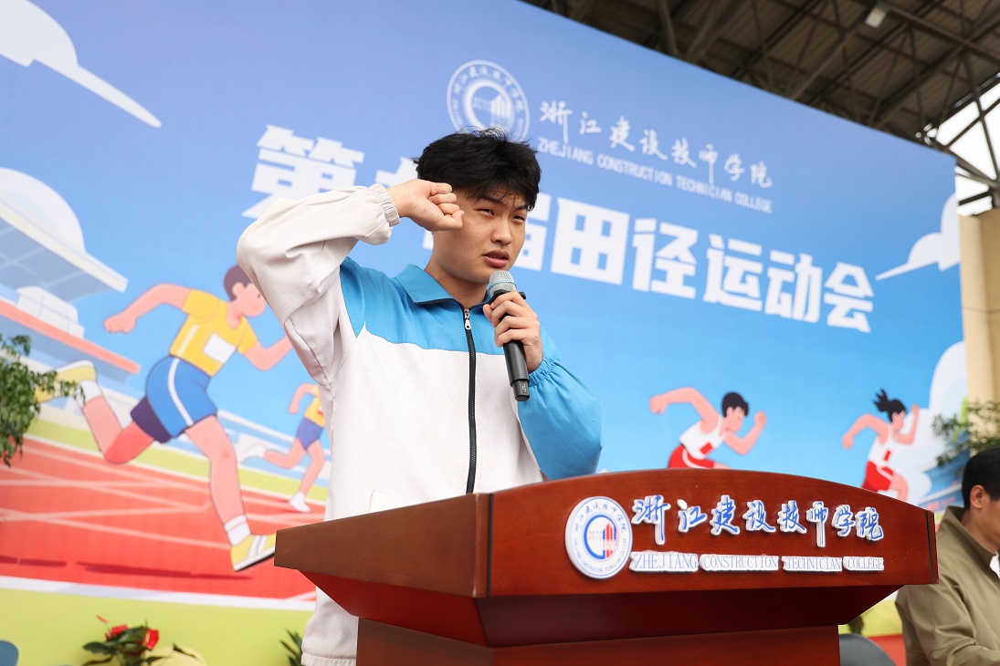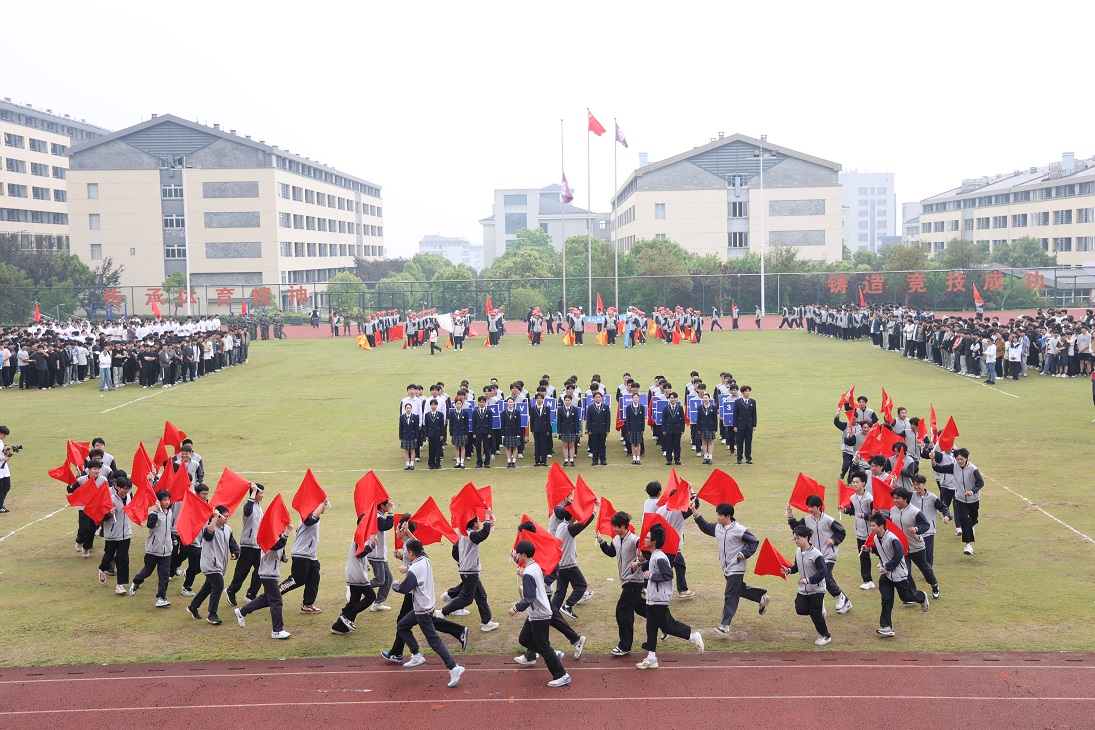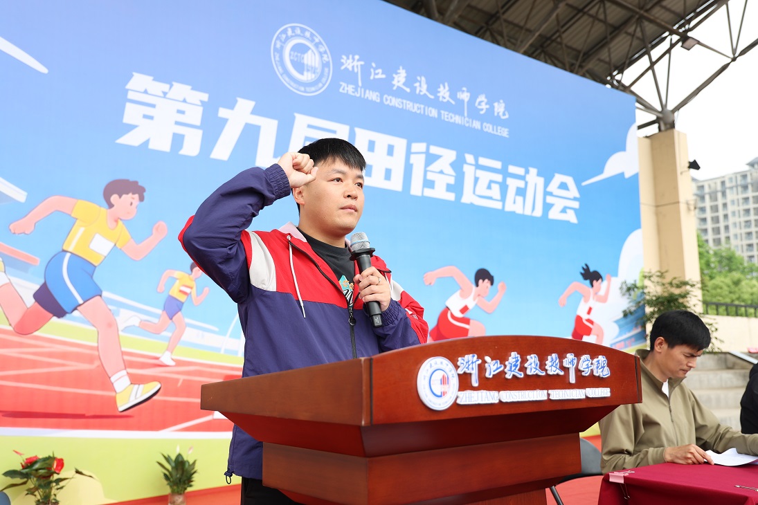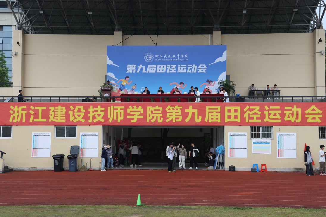 4月23日,迎着雨后朝阳,浙江建设技师学院第九届田径运动会鸣枪开赛。学院党委书记致开幕词,全体师生齐聚田径场参加开幕式。
