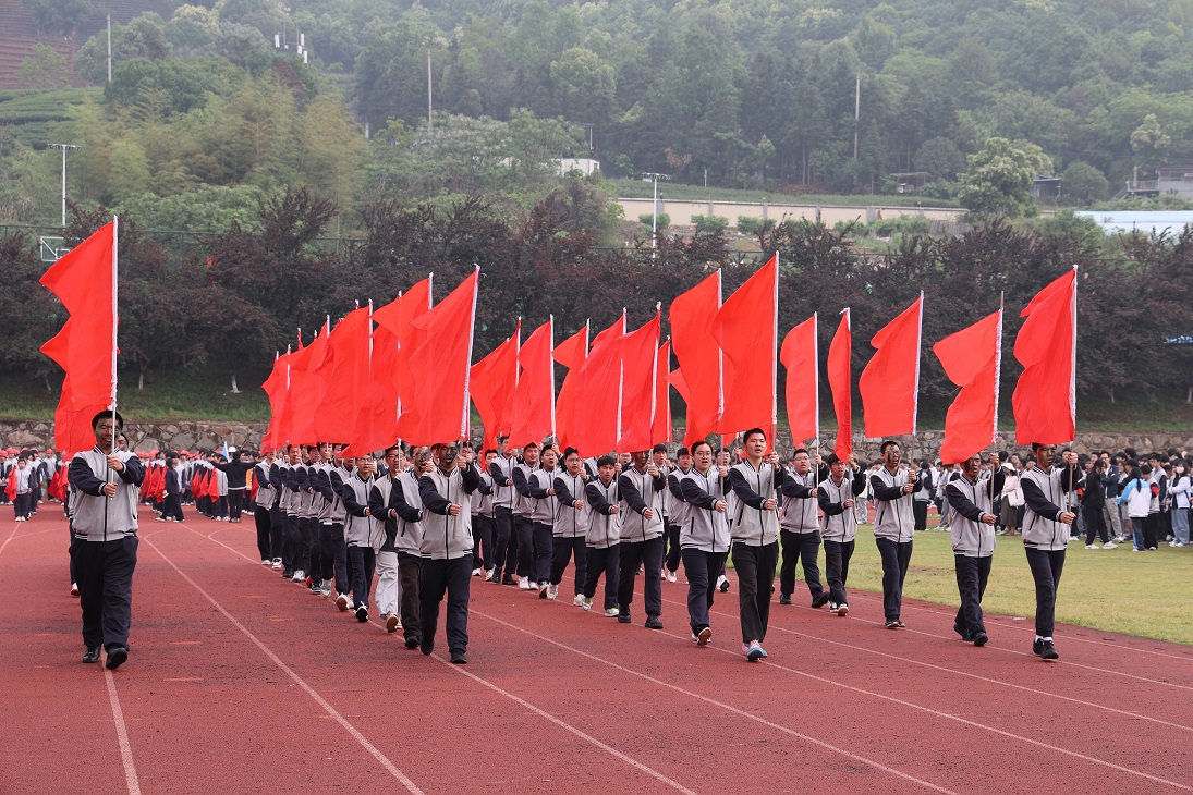 伴随着激昂的乐曲,国旗队、校徽队、红旗队和建筑工程系、经济管理系、建筑艺术系、安装工程系方阵迈着热情洋溢的步伐向主席台走来,同学们神采奕奕,步伐铿锵有力、动作整齐划一、口号响彻云霄。