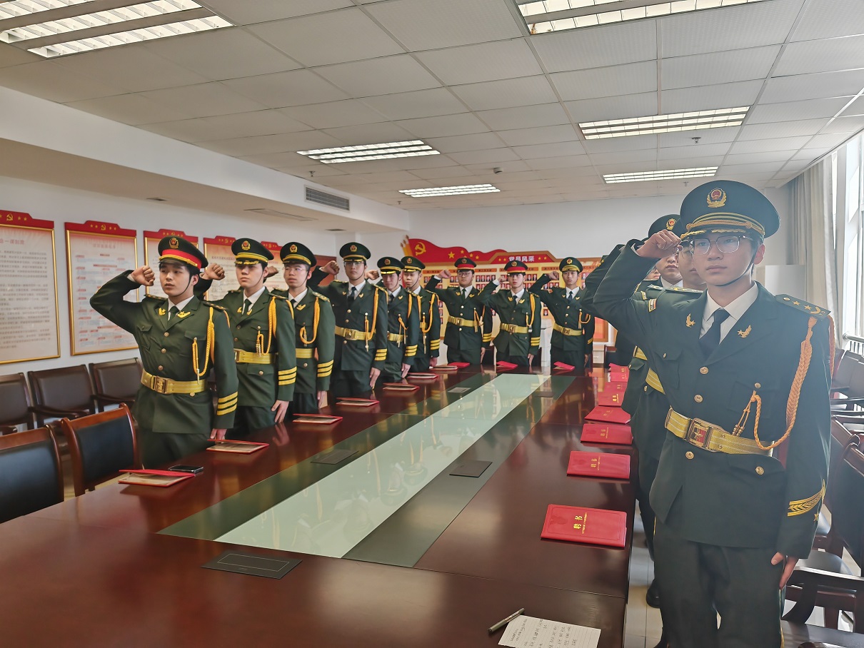 有这样一支队伍,穿梭于人群之中留下一抹军绿;有这样一支队伍,挺立在国旗杆下庄严守护。他们就是浙江建设技师学院国旗护卫队。3月19日下午,学院国旗护卫队新队员聘任仪式在行政楼911室顺利举行。 学院党委委员、副院长黄建蓉,指导教师黄威、王璐瑶及国旗护卫队全体队员参加仪式。