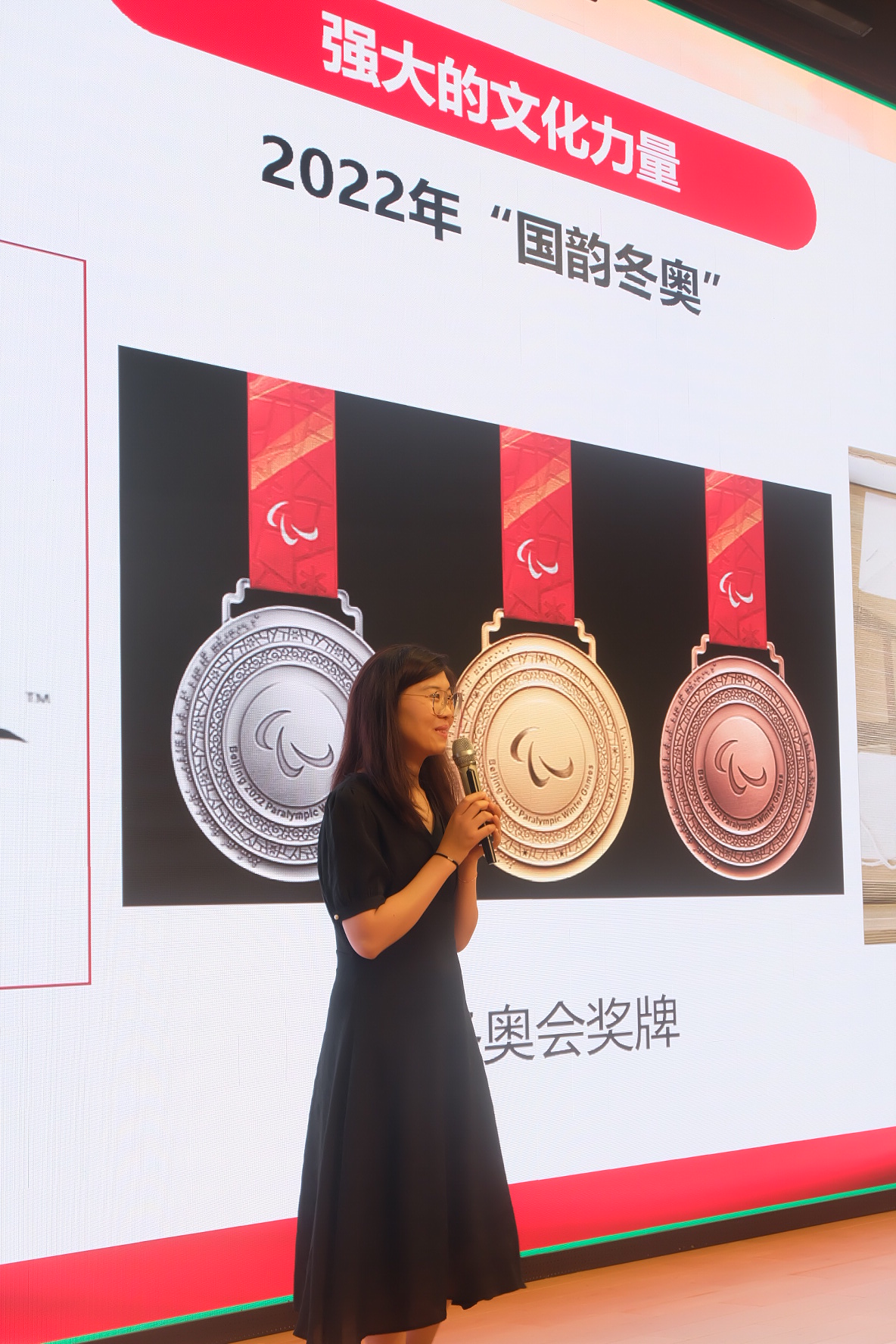 讲授中,贾老师首先从2022年北京冬奥会的会徽“冬梦”、奖牌“同心”及手工编织的颁奖花束为切入点,向同学们展示出冬奥会上丰富多彩的“中国风”元素,折射出中华文化之美和浓郁的文化自信。接着,她通过一张张图片的展示和通过“中华文明探源工程”的探索视频、河南卫视推出的“中国节日”系列节目及女排十连冠的精神的赏析,带领同学们理解文化的含义,见证激荡人心的中华文明图谱及博大精深的中华文化脉络,树立自立于世界民族之林的中国精神。