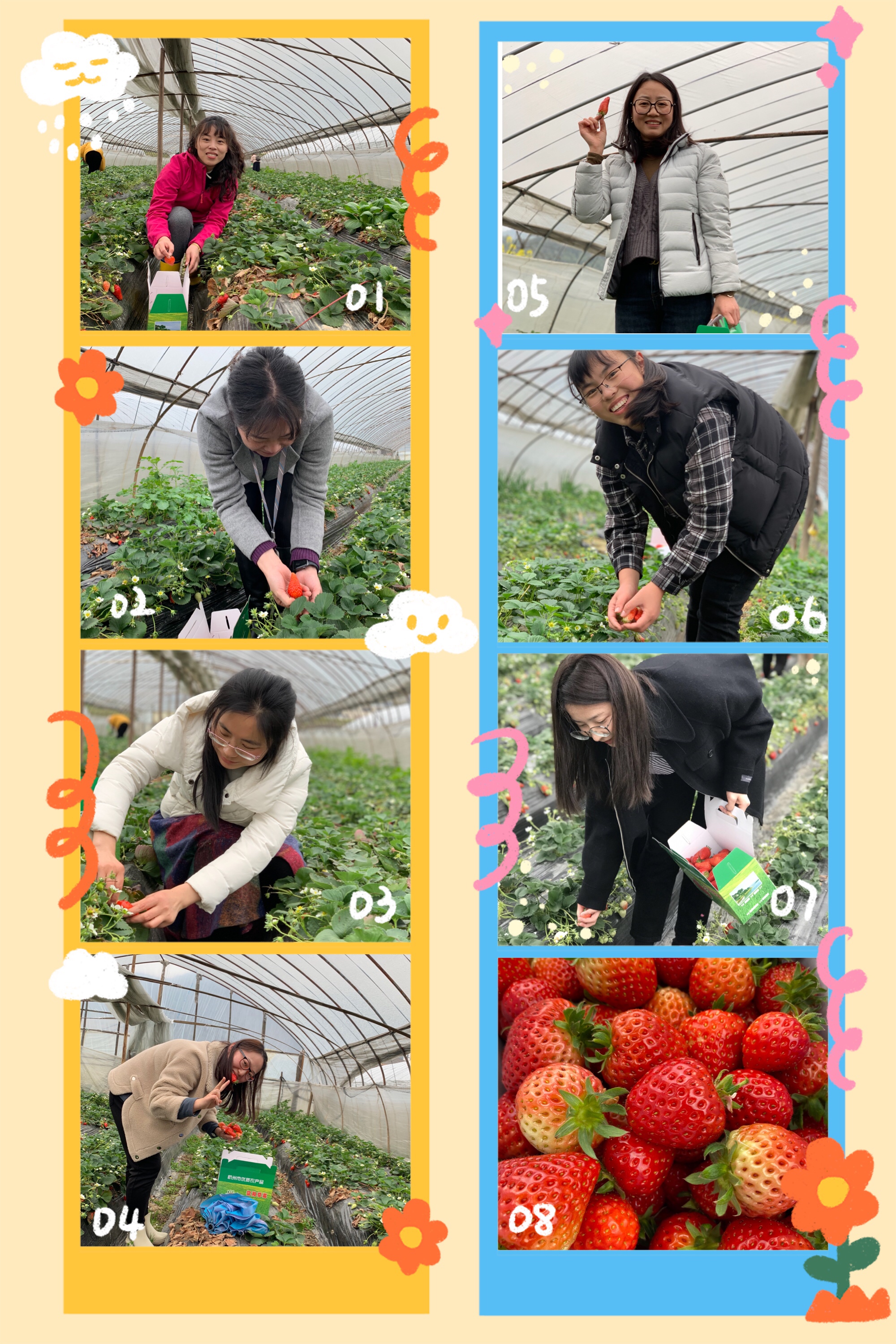 3月5日下午,可爱的“女神们”来到富阳大青草莓基地,与草莓来一场甜蜜的“约会”。虽然天公不作美,飘着小雨,但是也没有抵挡“女神们”的约会心情。听,草莓园里传来了阵阵的欢笑声;看,“女神们”与草莓的美丽邂逅。