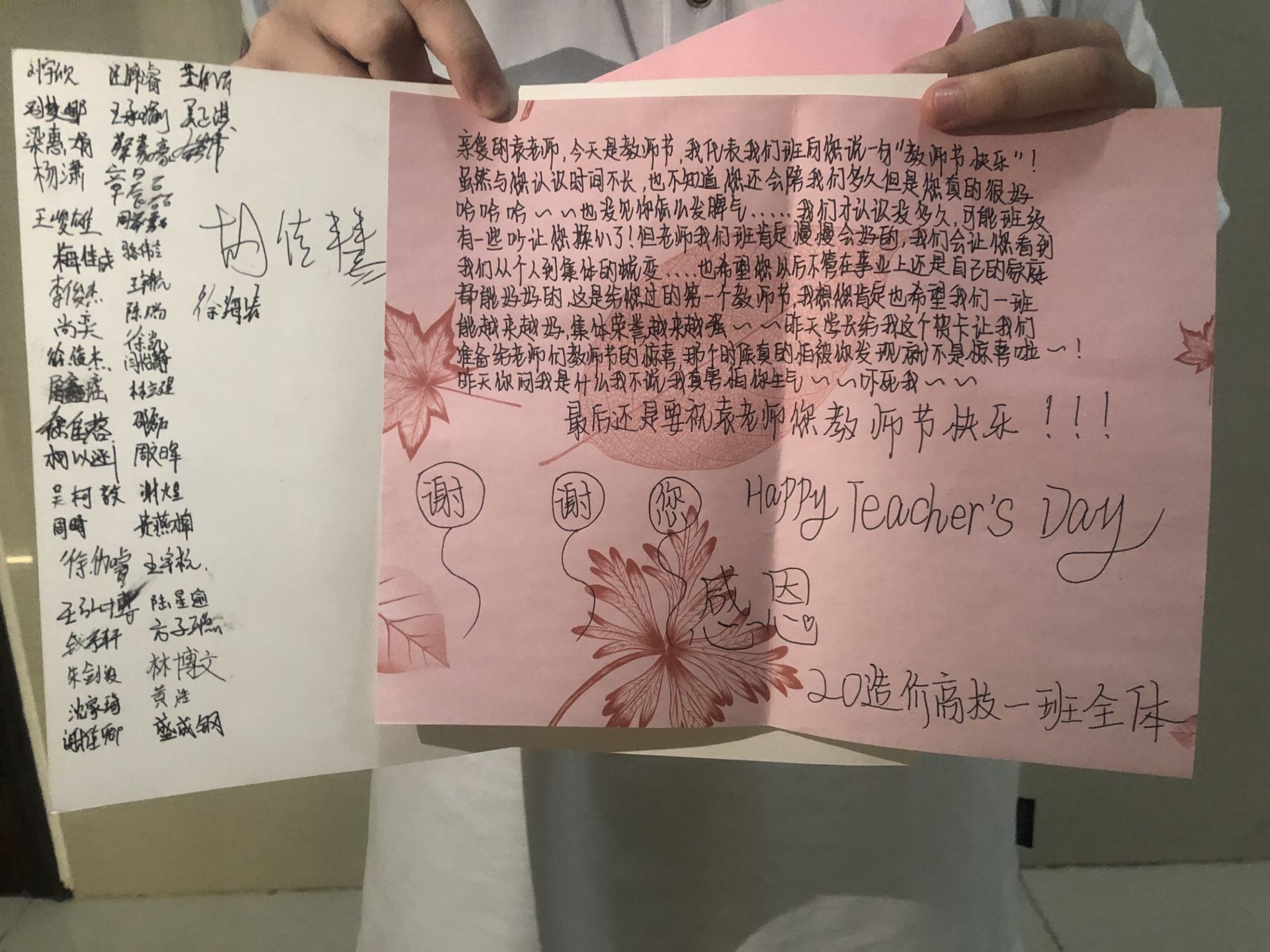 伴着清晨的第一声铃声,当班主任老师踏入教室时,他们不知道一份神秘的“礼物”正等着他们,同学们在班长的带领下,全体起立,齐声喊出:“老师,教师节快乐,您辛苦了!”这一声声祝福感动了每一位班主任,也拉开了教师节主题活动的序幕。