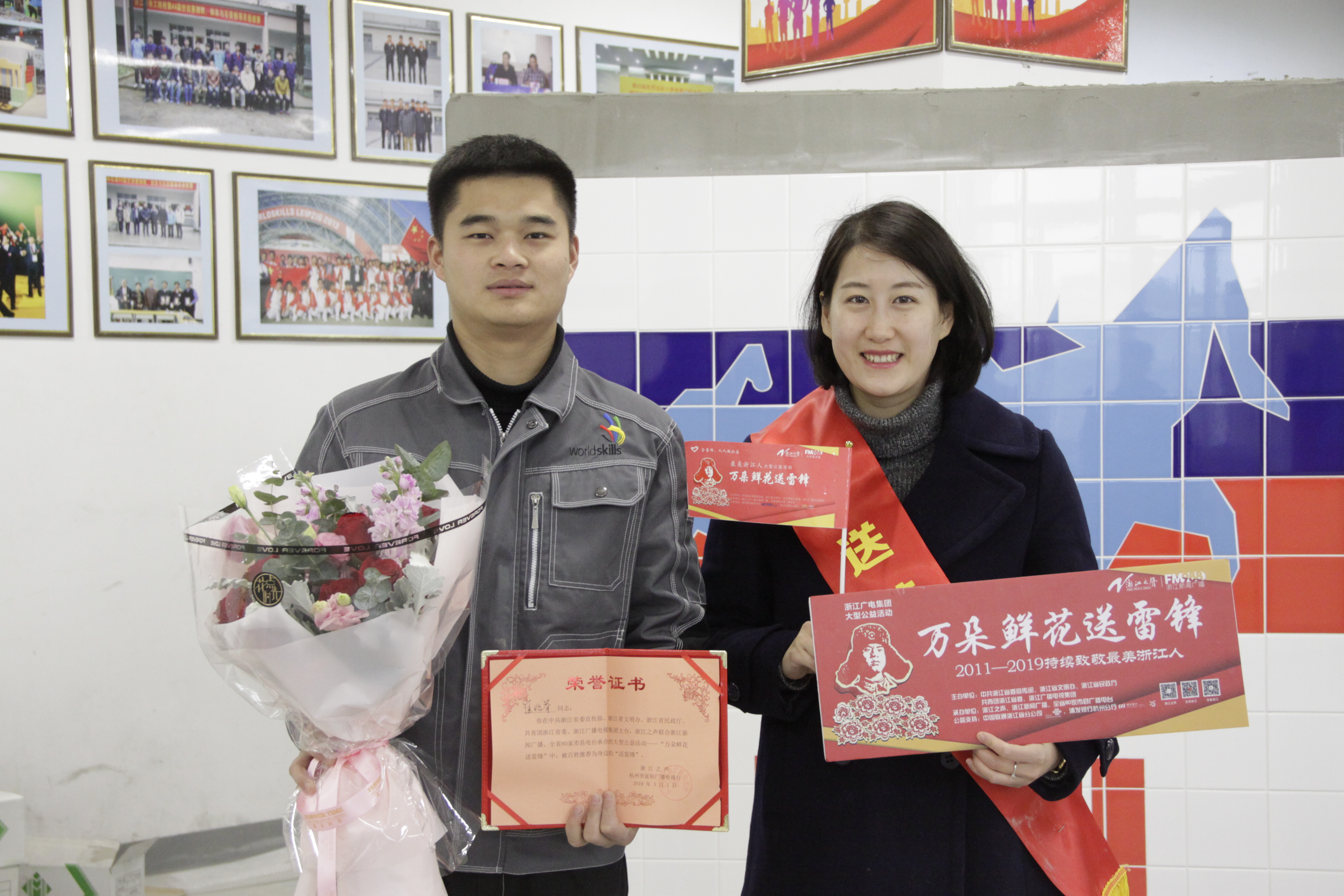 2月28日,富阳电视台摄制组一行来到我院,将身边的“活雷锋”荣誉证书和鲜花送到我院学生崔兆举手中。
