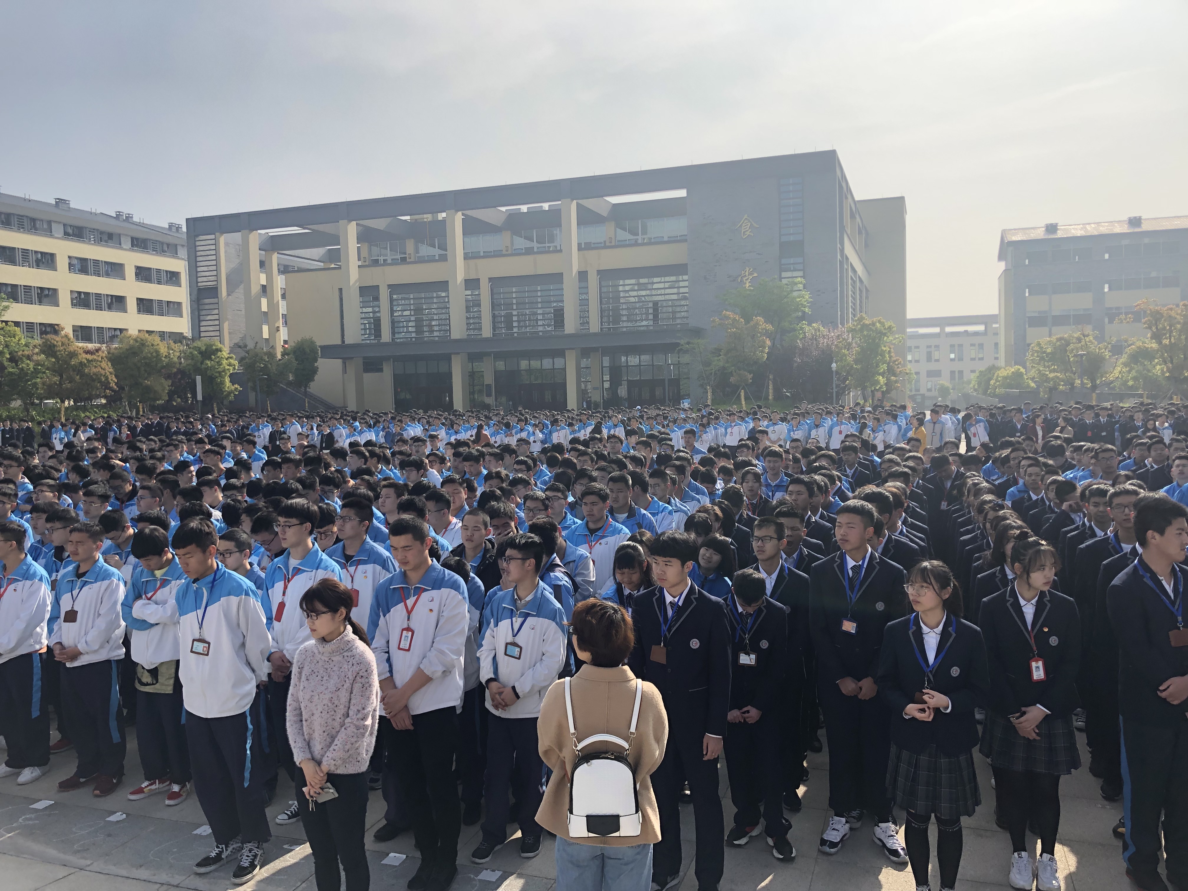 早上8点整,升旗仪式正式开始。伴随着嘹亮的乐曲声,五星红旗在国旗班的护送下缓缓进场。当雄壮的国歌声想起,升旗手振臂一呼,鲜艳的五星红旗冉冉升起,全体师生肃立,行注目礼。