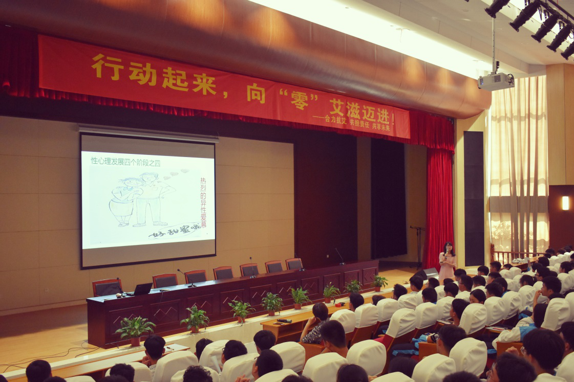 陈清清医生以“行动起来,向零艾滋迈进”为主题,从什么是艾滋病、艾滋病流行现状、艾滋病的传播途径以及预防艾滋病的方法与措施方面进行了专业细致的讲解,并通过一个个鲜活的图片向同学们展示了艾滋病患者的痛苦经历。