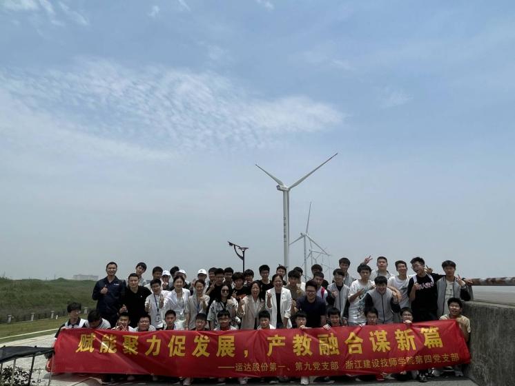 为进一步深入贯彻学习习近平新时代中国特色社会主义思想,深化产教融合、校企合作,第四党支部于5月26日联合浙江运达风电股份有限公司的第一、第九党支部带领安装工程系2022级运达风电订单班赴中电工程海盐风场组织开展“党建聚力促发展·产教融合谋新篇”的主题党日活动,对嘉兴海盐风电项目基地进行调研和考察,了解其规模形式、设备特点、发展规划和前景特色等。
