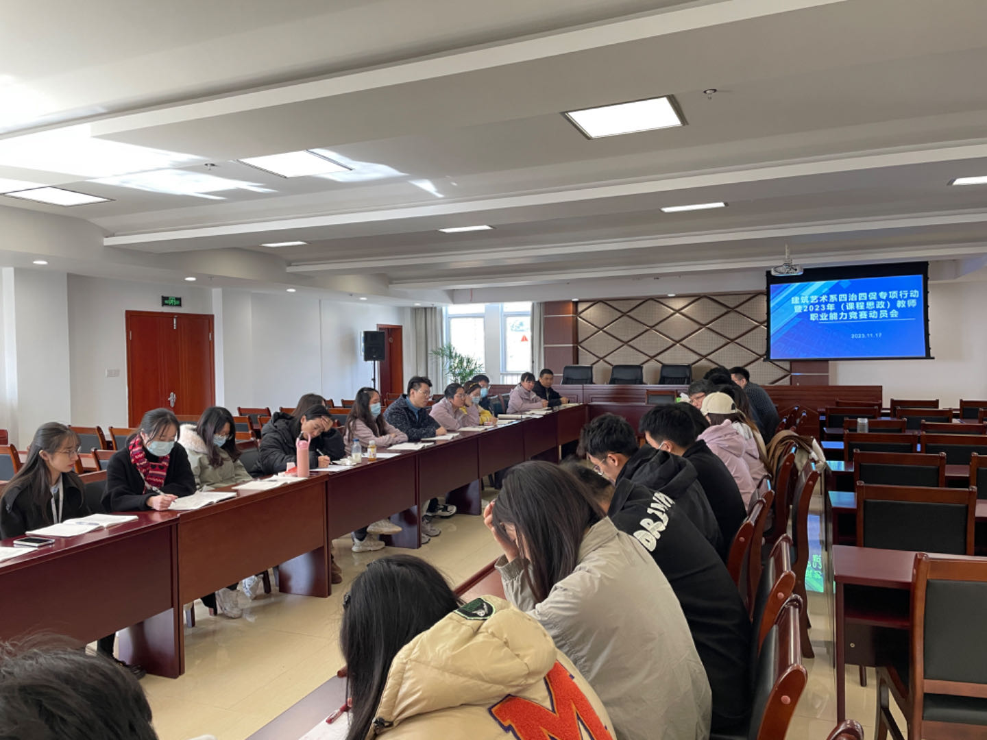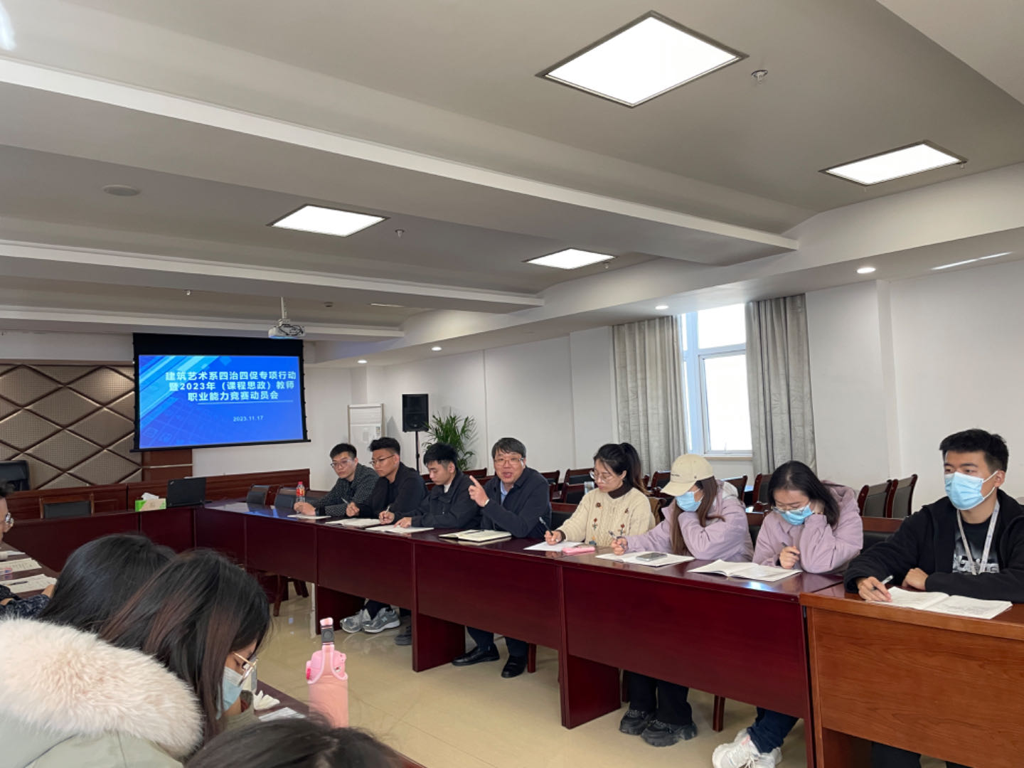 建筑艺术系将进一步深入开展“四治四促”作风建设专项行动,以2023年(课程思政)教师职业能力竞赛为助手,注重提升系部教师综合素质与课程思政水平,贯彻落实立德树人的根本任务,为学院双一流建设贡献力量。