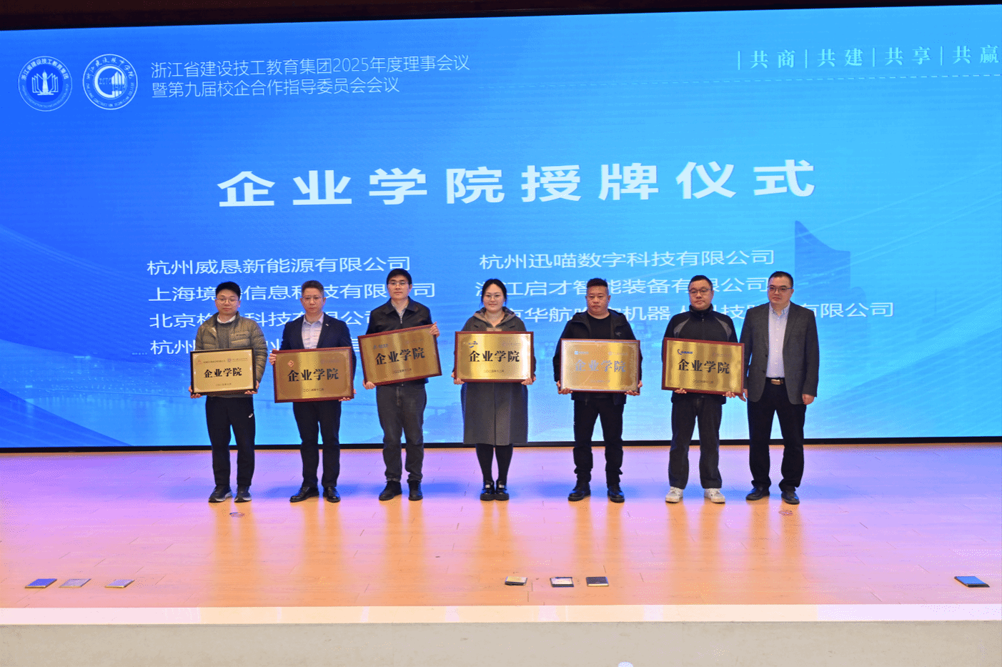 为进一步深化校企协同体育人机制,会议还与杭州威恳新能源有限公司、北京构力科技有限公司、盎锐(杭州)信息科技有限公司、浙江佑海装饰工程有限公司等十余家企业共建的“企业学院”进行了集中授牌。这些企业学院将成为实现专业链与产业链紧密对接、培养企业急需高素质技能人才的重要载体。